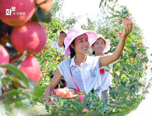 果 香 飘 逸 丰 收 喜 人 ——访北青郡龙田果木农场 咸镜南道北青郡龙田果木农场迎来采摘苹果时期。由于整个春夏做好果木的施肥培植管理,一到秋季展现喜人的丰收风景。农 业 劳 动 者 精 心 采 摘 累 累 的苹果,脸上洋溢出丰收的喜悦。 年初起,农场干部和农业劳动者科学地进行施肥、剪枝等工作,还自行生产和利用各种高效能生物农药,为水果生产做出贡献。 近几年来,农场新营造大面积的果园,每年进行轮作,打下持续增加苹果生产的基础。 农场办好农业科技普及室,不断提高农业劳动者的技术技能水平,还采用许多科技成果,为在灾害性异 常 气 候 条 件 下 也 能 提 高 每 公 顷产量,改善水果品质提供保证。