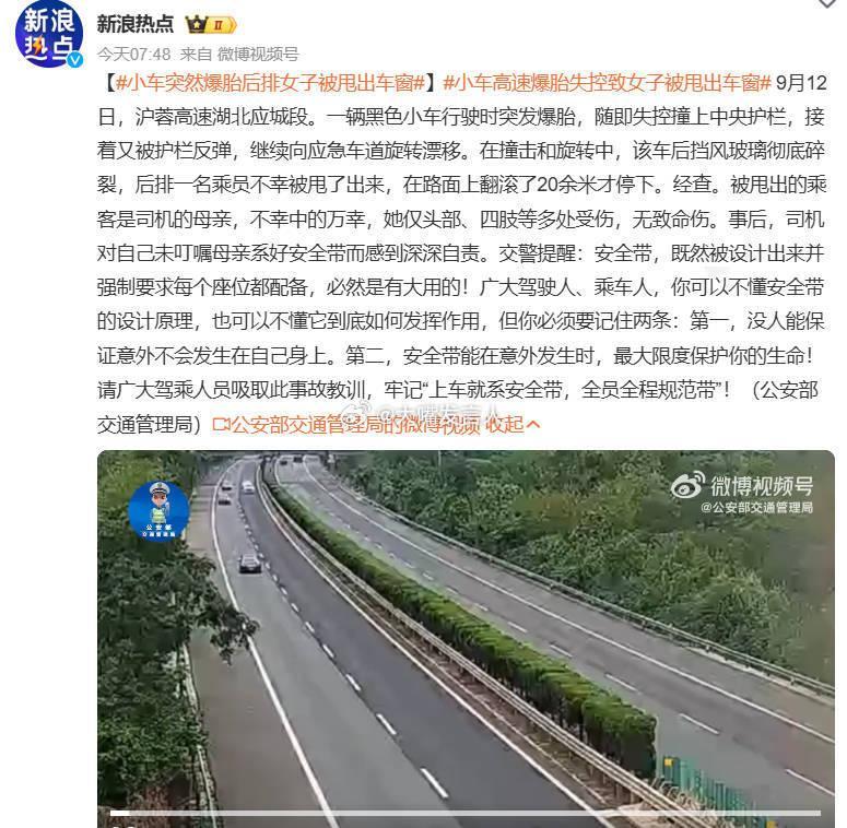 小车高速爆胎失控致女子被甩出车窗,热点观点