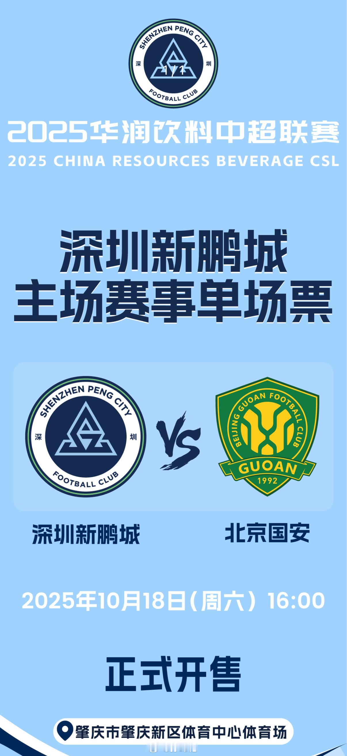 深圳新鹏城本周末在肇庆专业球场的中超比赛