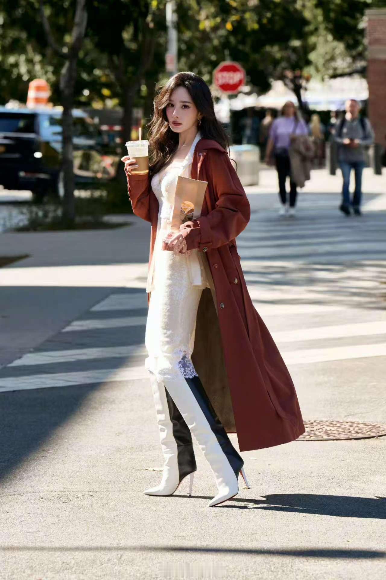 杨幂街头秀场杨幂红风衣街拍杨幂红风衣街拍,好飒,[抱一抱][抱一抱]