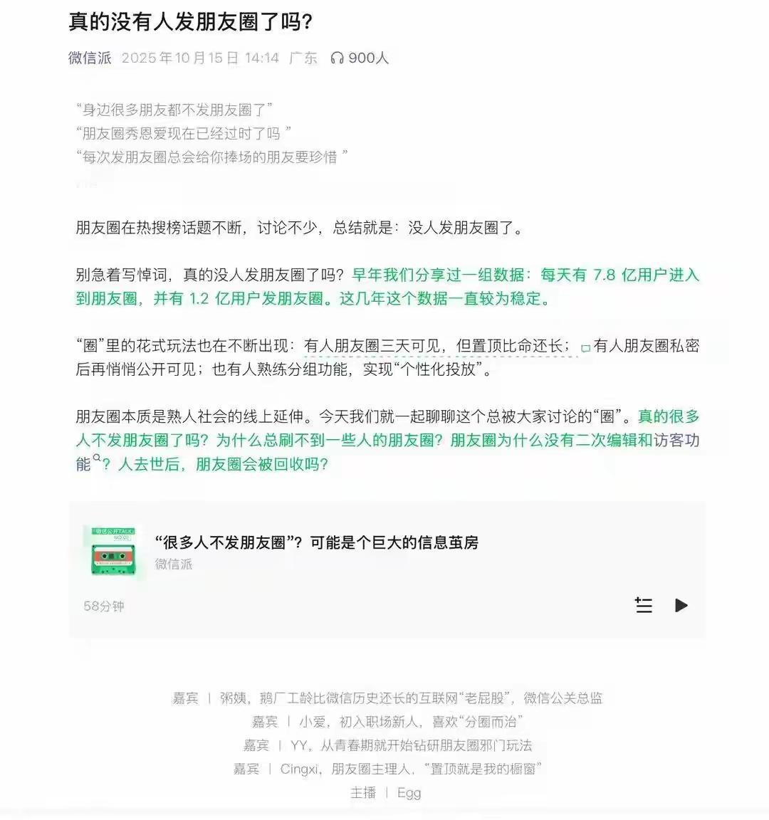 朋友圈的“偷看自由” 微信这次直接焊死了安全阀! 官方再次重申不会上线访客功能 这波操作看似劝退了好奇党 实则守住了社交最后的体面。 现在的人发朋友圈早就成了“薛定谔的分享”,想记录生活又怕被过度窥探,删删改改半天只为屏蔽特定的人。访客记录看似能满足好奇心,实则会把社交变成一场尴尬的“流量竞赛”,点赞、浏览量会慢慢绑架分享欲。微信的坚持,恰恰是读懂了成年人社交的潜规则——有些关心无需声张,有些路过不必留痕。