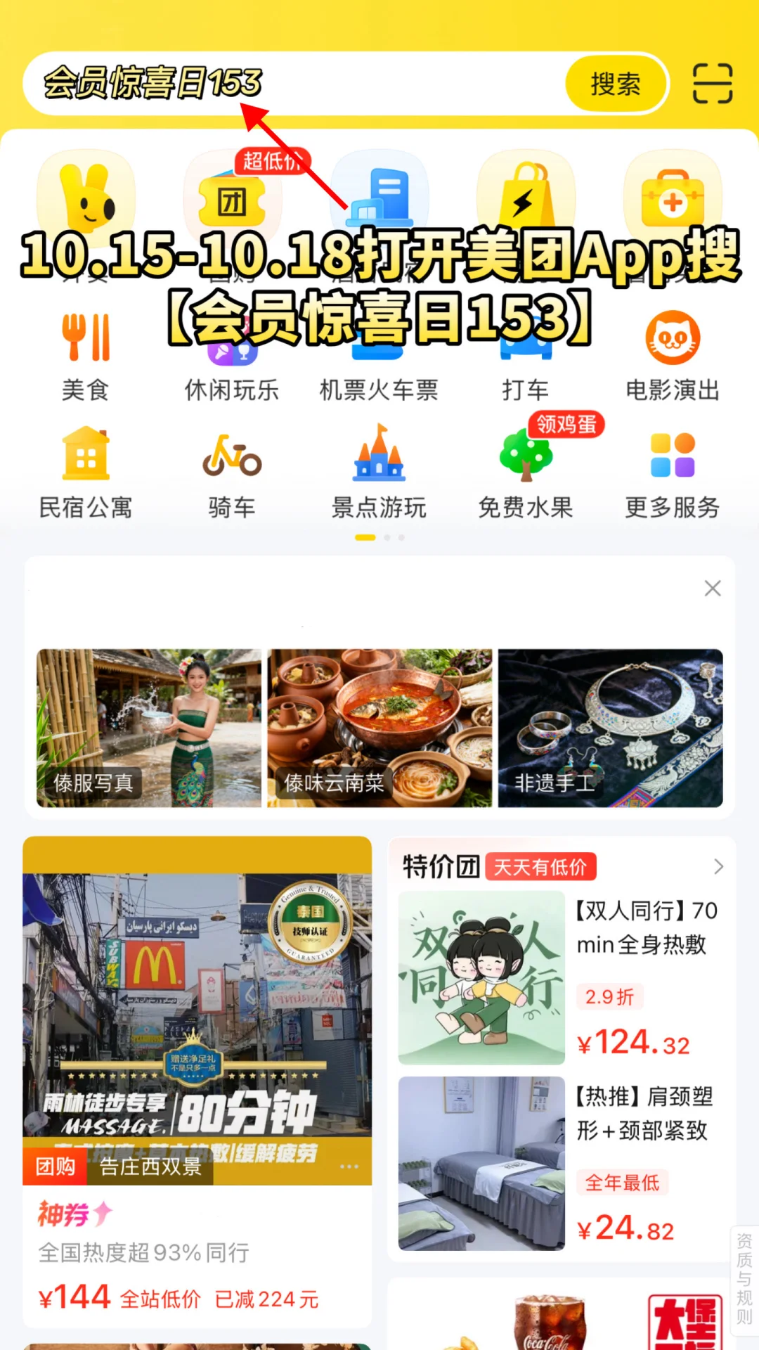 ⭐️10.15-10.18上美团App搜【会员惊喜日153】就可以0元薅大牌羊毛。