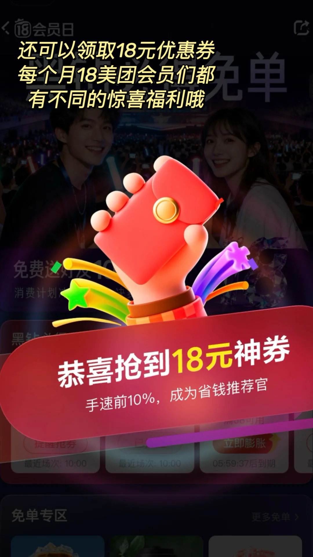 ⭐️顺手点一下还可以领取18元优惠券,每个月18美团会员们都有不同的惊喜福利哦,快叫你的好闺闺一起薅羊毛啊!!!