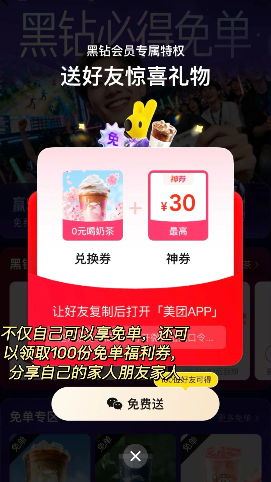 ⭐️不仅自己可以免费吃派,还可以领取100份免单福利券,分享自己的家人朋友甚至七大姑八大姨,远方表哥都用不完呀!!!