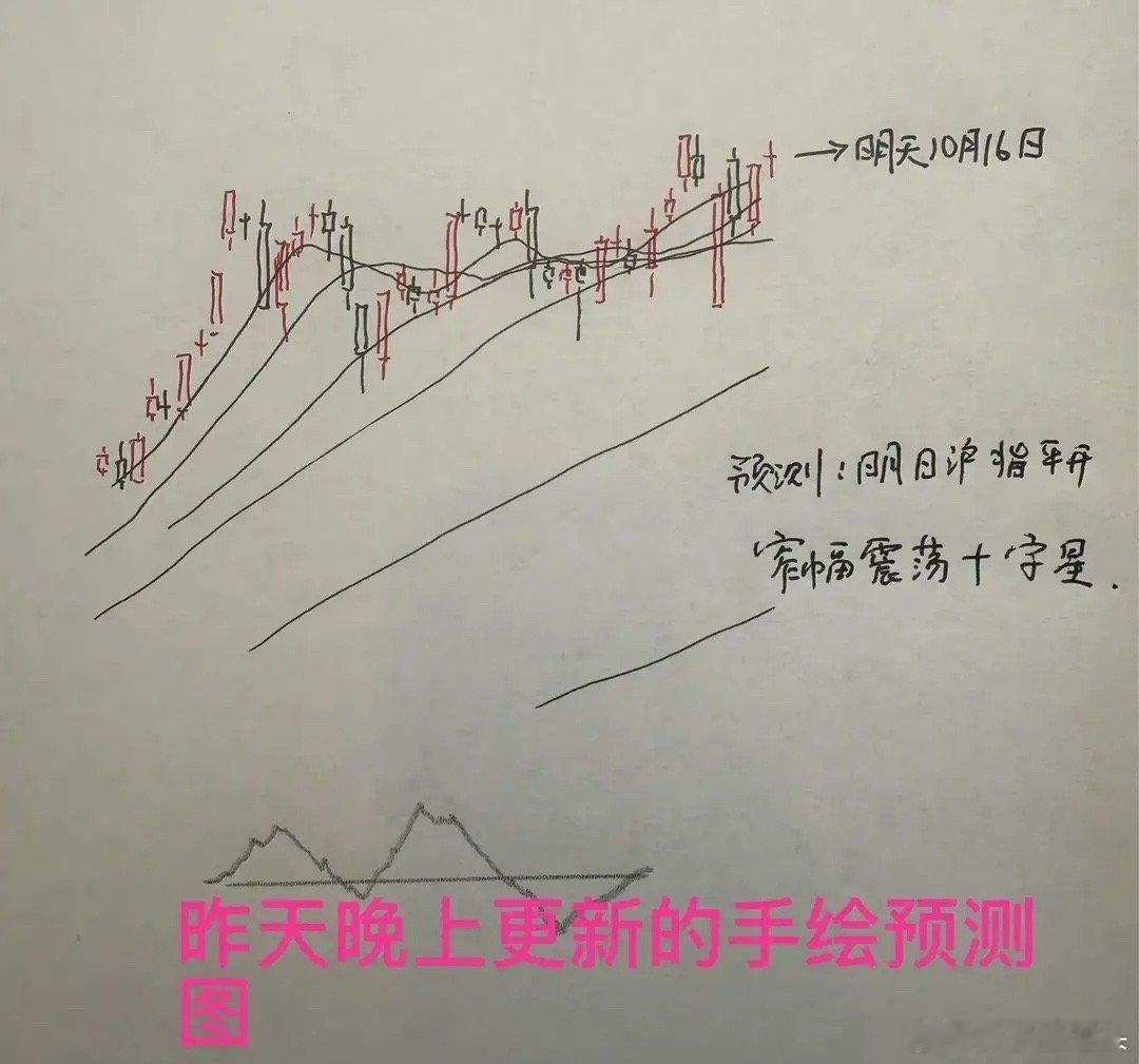 但是大家也不用过度的担心,莎莎个人认为明天市场指数如果往下走的话,还是具备短期探底回升长下影线的这种走势的可能性。那么明天A股到底怎么走?关于明天走势的手绘预测图,我将会再稍晚一点更新,大家保持关注。