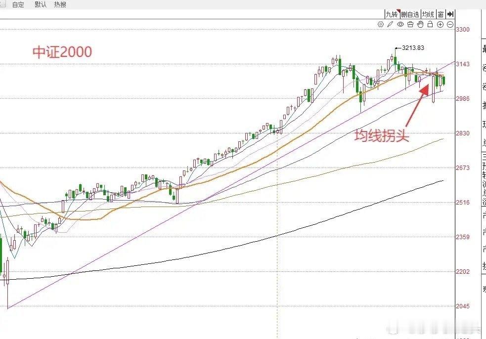 第二,大家请看图代表小盘个股走势的中证2000指数今天跌1.47%。中证2000指数的调整,进一步强化了短线趋势线破位的走势。并且中证2000指数的调整,使得重症2000指数5日线10日线开始向下开口。而且目前整整2000指数5日10日20日30日多周期均线都有拐头向下的走势。也就是说接下来我们还要重点防止小盘题材个股短线的调整可能还没有结束。