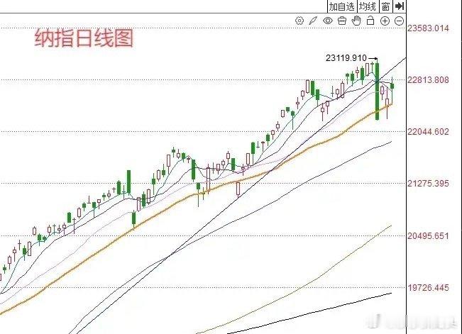 第三,大家请看图四昨天晚上美股三大指数高开回落。以纳斯达克指数为例,纳斯达克指数明显高开之后,但是并没有守住高位,而是出现了明显的高开震荡的长腿十字星K线。那么这种走势的情况下,说明今天晚上外围市场美股调整的概率也是比较大的。