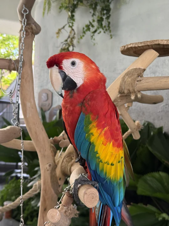 结束后还可以到外面拍拍照,我们选择了上到天台的餐厅用餐,环境和出品都很不错。还有一只五彩金刚在门口营业哦!!好可爱~