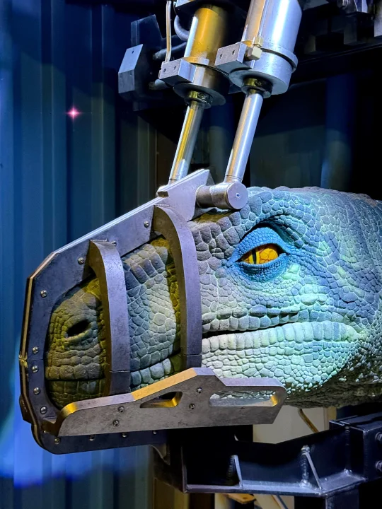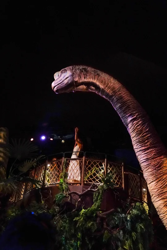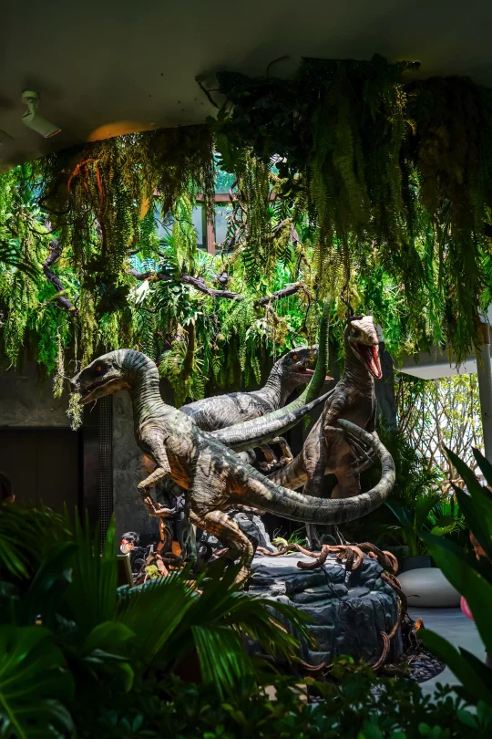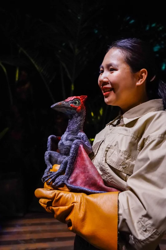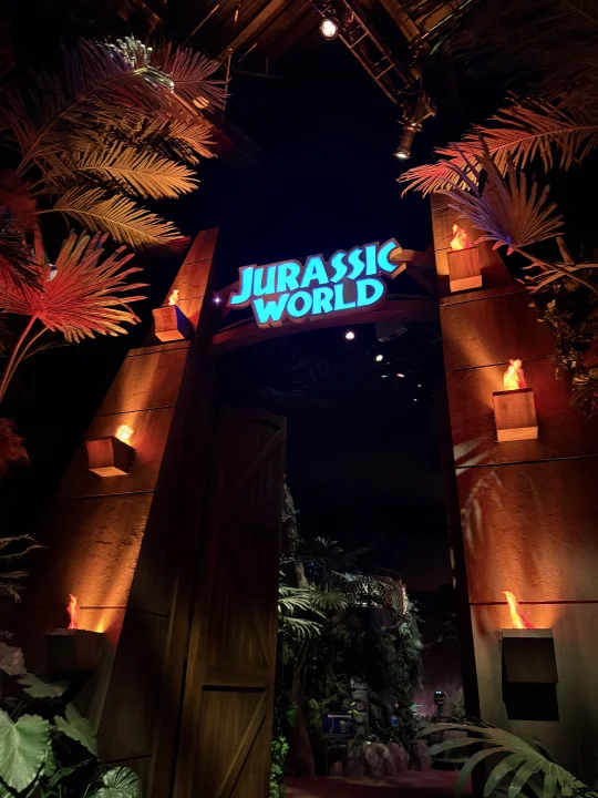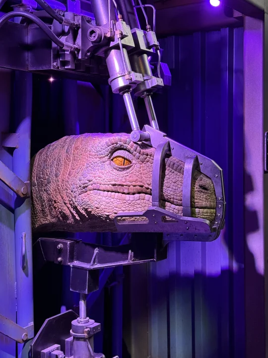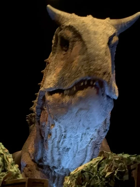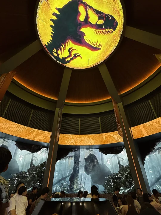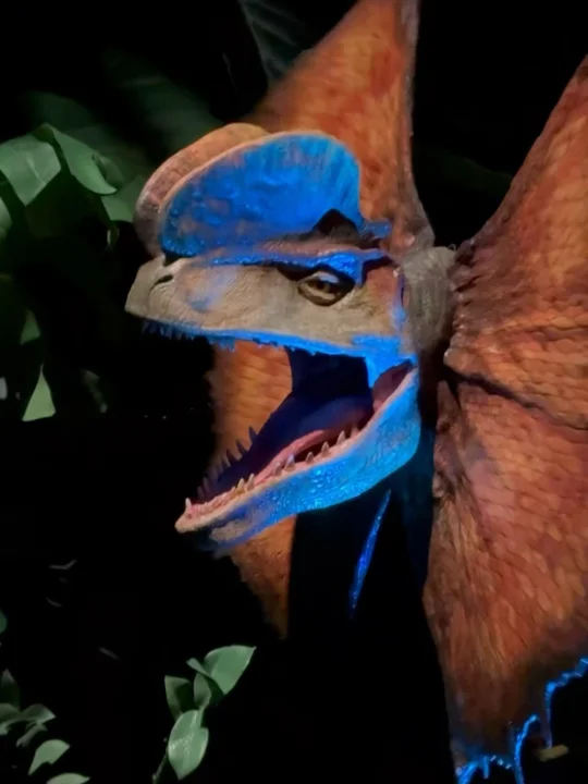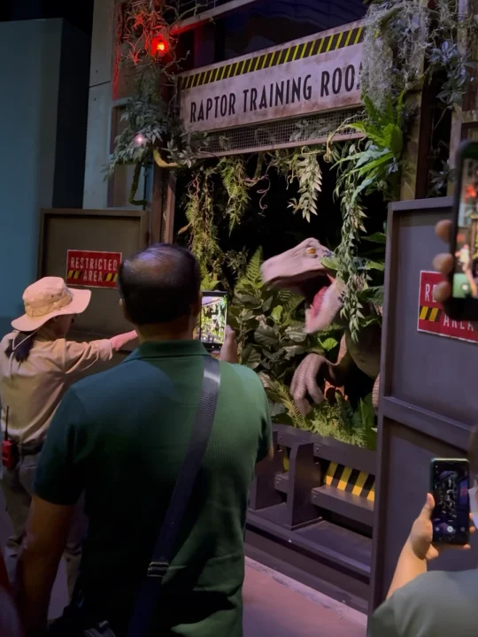 场地内布置几乎还原了侏罗纪IP的元素,第一部里为了偷蛋而撞毁的吉普车,走散时候遇到的颈部张开一层薄膜的双嵴龙,偷跑的Blue,代入感很强。还有些小朋友都吓哭了😂。工作人员讲解也是非常的投入,遇到紧张的环节时的表演非常激动。