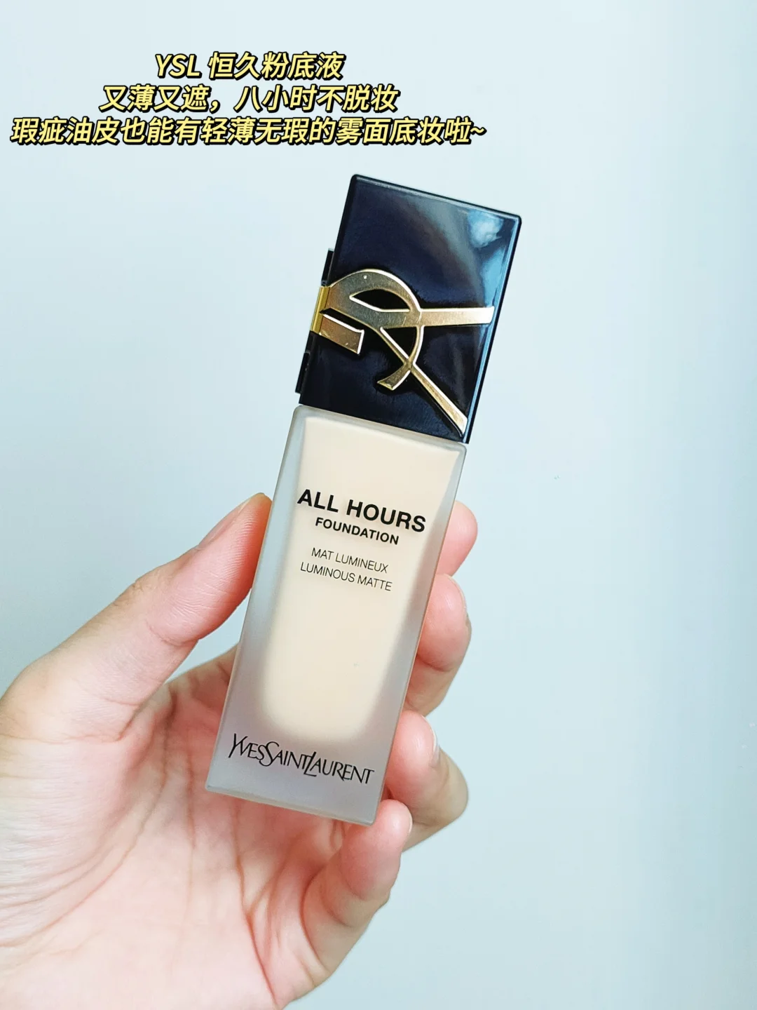 底妆用YSL恒久粉底液直接一步封神! 质地丝滑易推开 遮瑕力又很高,红痘印、斑点、毛孔闭口薄薄一层就能遮的很好,就连黑眼圈也能隐匿,上脸瞬间就是轻薄的哑光雾面肌,没有假面厚重感~ 无需等出油融合,一上脸便肉眼可见的精致,雾面哑光感全程在线! 秋冬爱穿高领,也完全不会被蹭掉 T区微微出油后不斑驳不卡粉,美到卸妆前 有它在手,瑕疵油皮也能拥有从早美到晚的清透伪素颜!