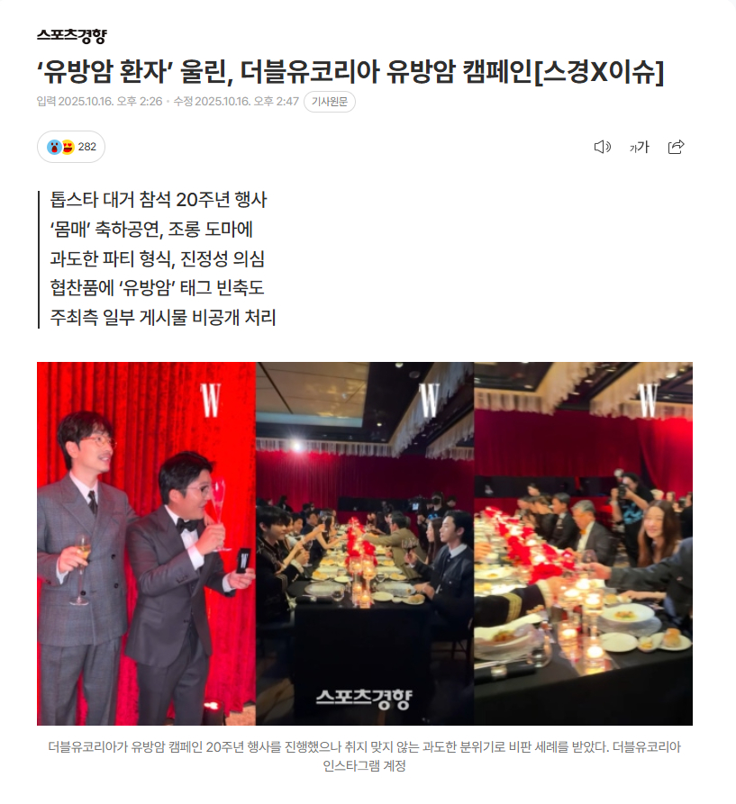 W Korea高调举办乳腺癌公益活动,却因过度的派对氛围与初衷不符而引发争议