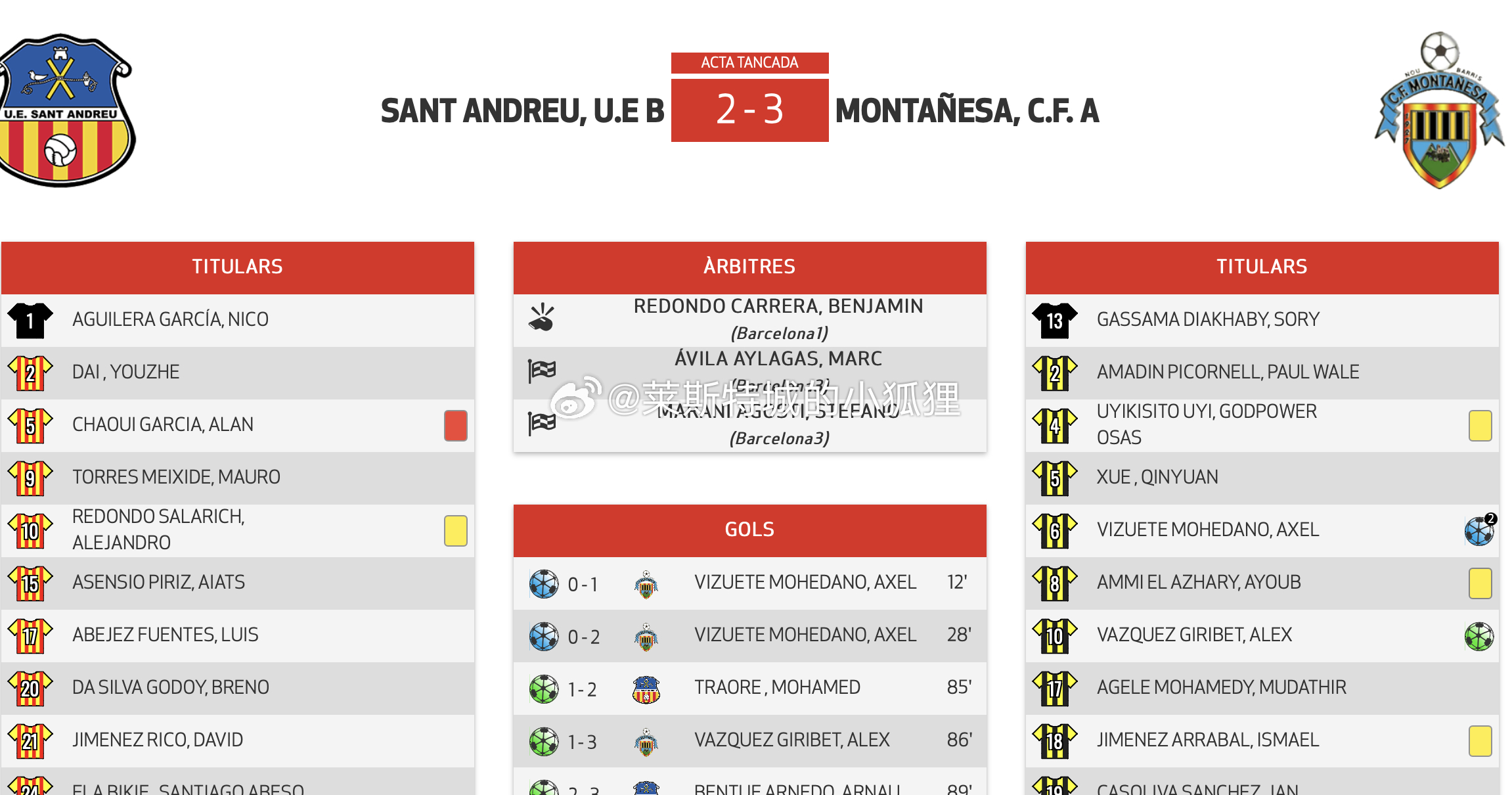 西班牙加泰罗尼亚U19优选联赛 圣安德鲁U19B队2-3不敌蒙塔涅萨 中国球员戴宥哲首发出战 新赛季四场比赛全部首发 留洋球员动态热点解读中超联赛
