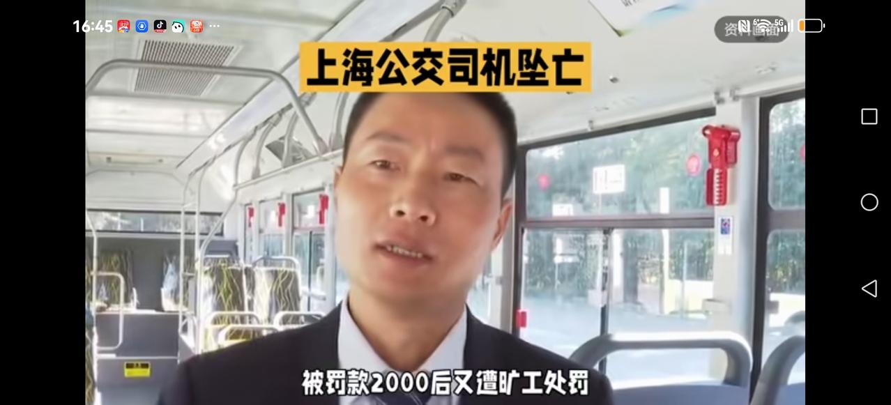 【公交司机背后的辛酸】 坐标上海 37岁的公交司机 上有残疾老人要养 下有妻儿一家人也要养 因为公交车的卫生问题,面临被罚2000元 到手只有7000元 由于想不通请假两天 被当作旷工处理,也面临罚款扣奖金? 有人说公交司机早上天不亮出门,座位前面都是监控,急刹车,语气不好等都要面临罚款,多则上千,小则几百。 目前官方还没有确认到底为什么会坠楼,排除刑事案件。 以上网传信息,不能确定。