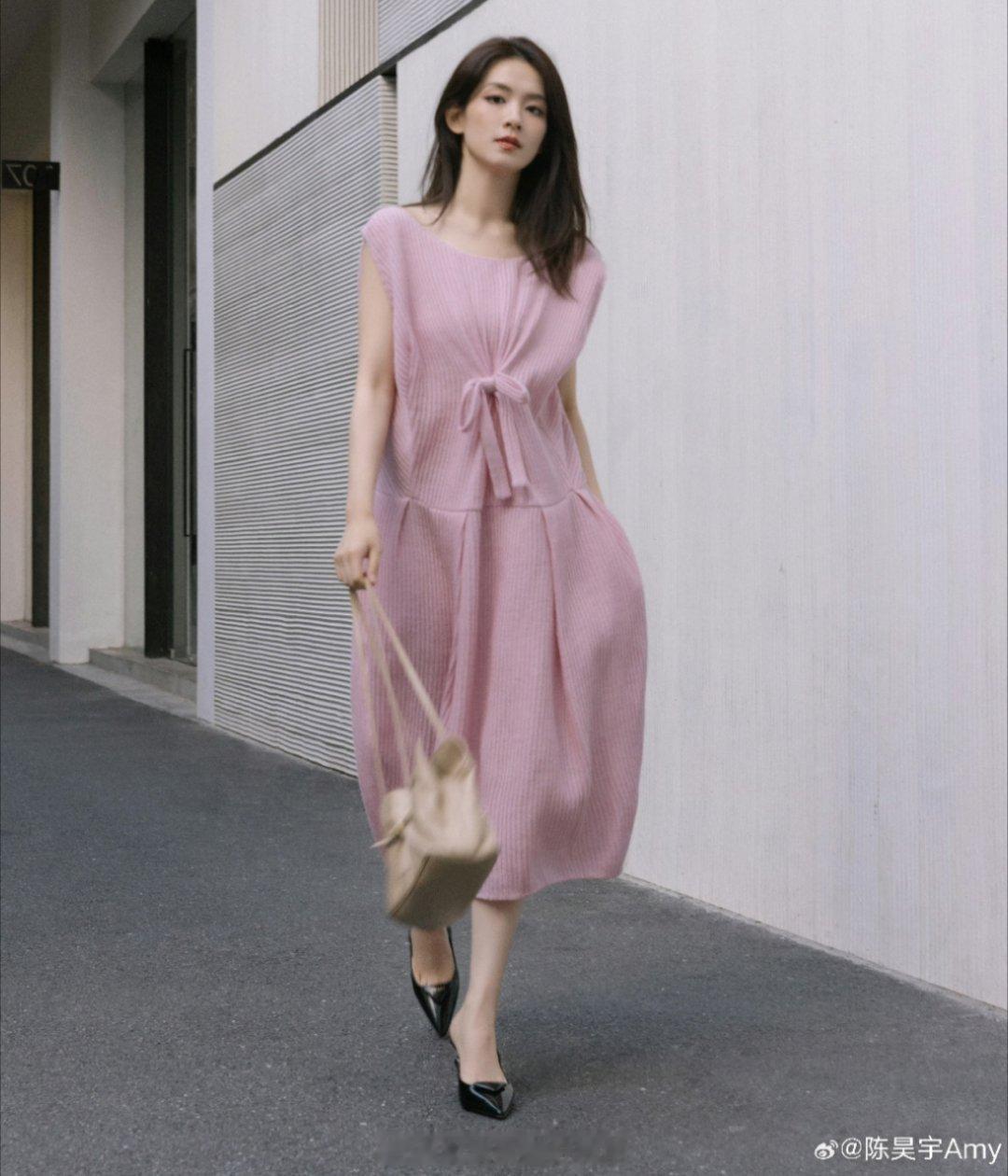 刘亦菲把死亡玫粉穿出了定制款的感觉,这种颜色普通人穿上分分钟黑三度,她居然能穿出