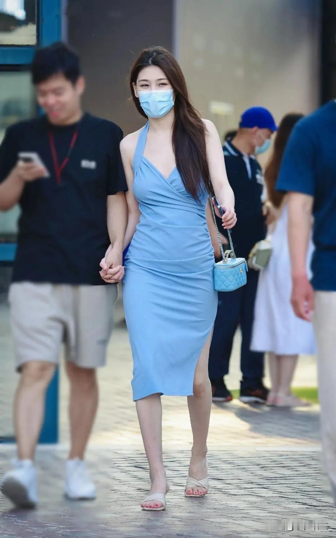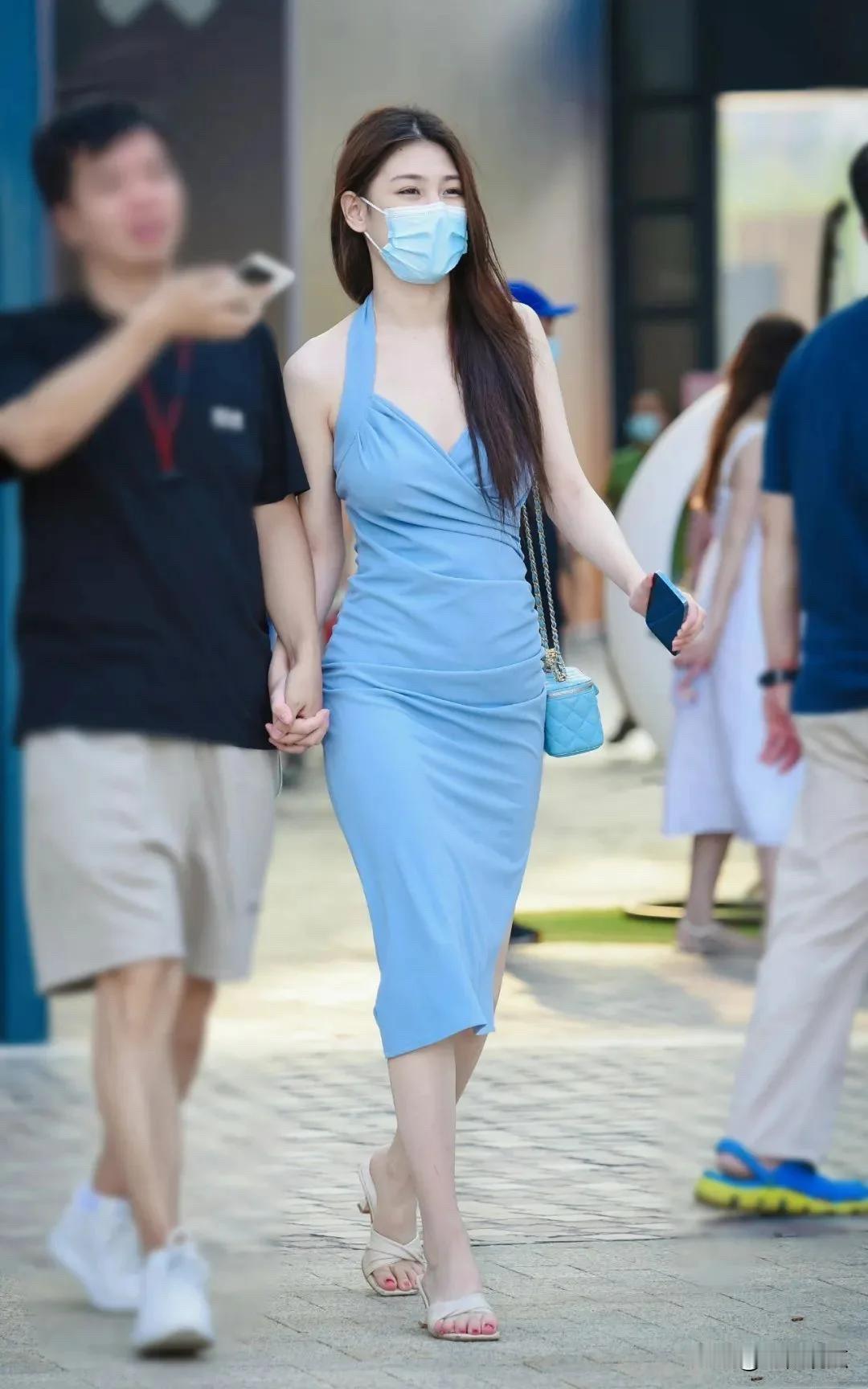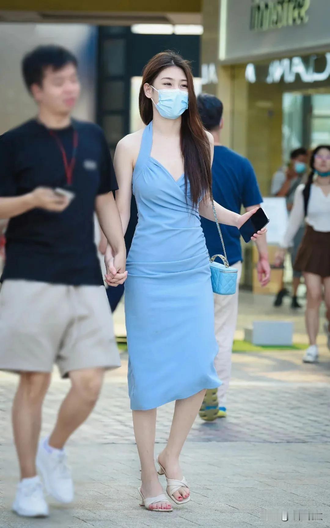 街拍蓝色连衣裙美女!美女街拍美女街拍照(无任何不良价值观引导)。
