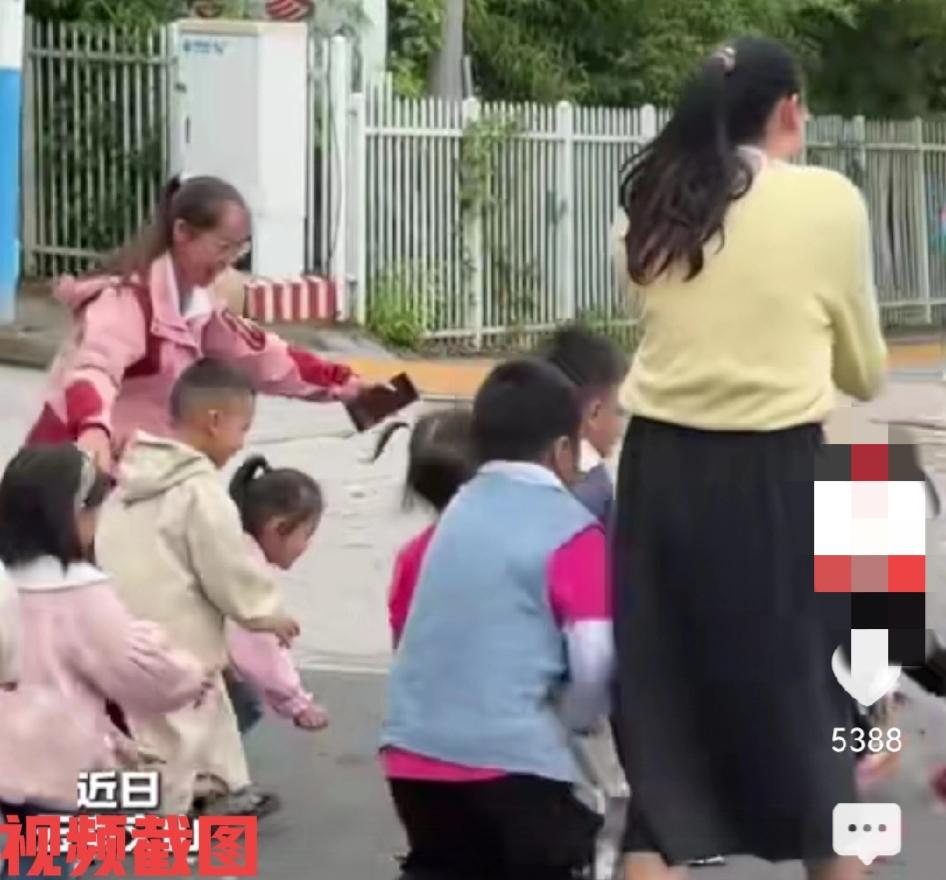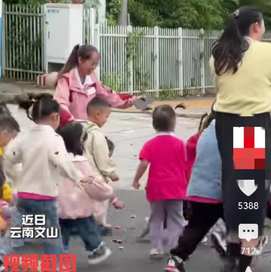 云南文山有一群萌娃在老师带领下过马路。 这时偶遇有婚车路过,这群萌娃的满眼里似乎充斥着对喜糖的渴望,此刻路过的婚车也看到这群可爱的萌娃,并停下车打开了车窗拿出糖果来,这把萌娃们纷纷走过来,她们也要沾染一点喜庆的滋味。 此刻估计车内的新人看到如此之多萌娃迎面过来,怕来不及分发糖果,并顺手撒在地上让萌娃们过来捡,这里萌娃们没有在意新人的行为,心情还是高兴弯腰捡起了地面扔落的糖果,还很兴奋的回头朝着婚车招手,表示她们的谢意。 这里看到萌娃们的可爱,在自己认定的世界里感受一次吃到喜糖的兴奋,这里有她们的激动还有她们的欢喜,毕竟这样的机会也只是偶尔遇见,这对于她们是无形之中的一次最为欢喜的经历。 如想婚车新人把糖果交给老师分发给萌娃多好,而不是扔在地上让萌娃们捡拾,如果那样的画面更为温馨。