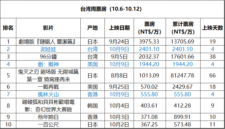 2. 台湾本土恐怖片《泥娃娃》开画成绩亮眼;
