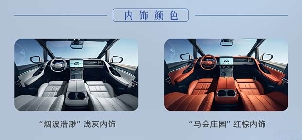 内饰方面,传祺向往M8宗师版内饰提供“马会庄园”红棕风格与“烟波浩渺”浅灰风格两种配色选择,采用环抱式造型设计,中控台区域覆盖软质材质,细节处加入镀铬饰条点缀,提升精致感。