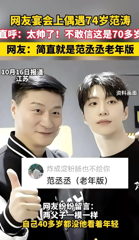 网友宴会上碰到范丞丞爸爸范涛,没觉得五官多“帅”,但看他74岁的身材管理和体态,瞬间懂了——帅的是那股精神头! 换谁见这状态的74岁老人,都会感慨吧?完全不像七十多岁。反而到像47岁。他们家条件不错,保养得好很正常,不为钱烦恼本就不容易显老。 以前总觉得范涛和范丞丞不像,直到见了他们全家才发现,范丞丞简直是爸爸的“老年版”,跟范涛一个模子刻出来的,基因太神奇! 你身边有这种“冻龄”长辈吗?来评论区说说~