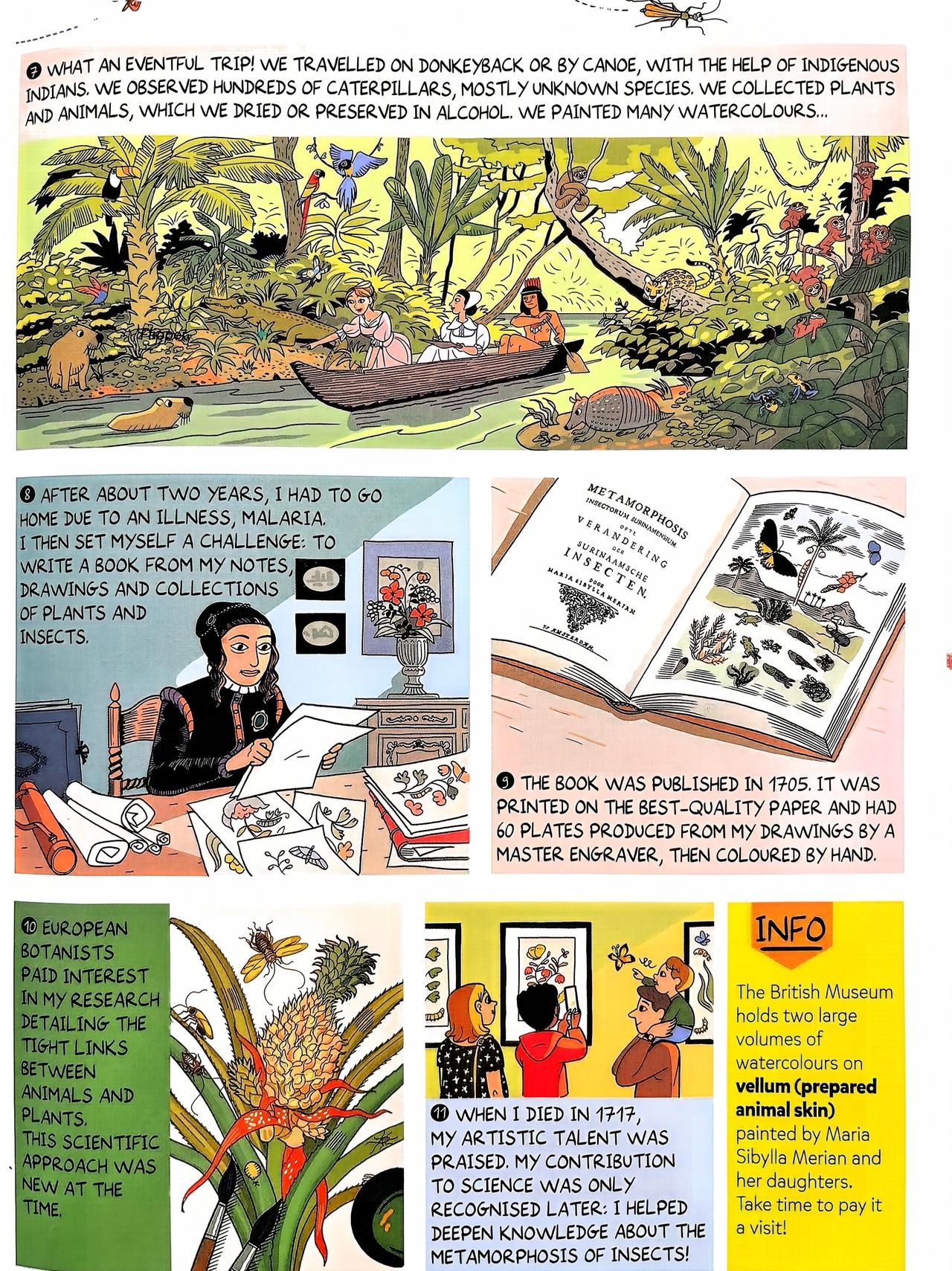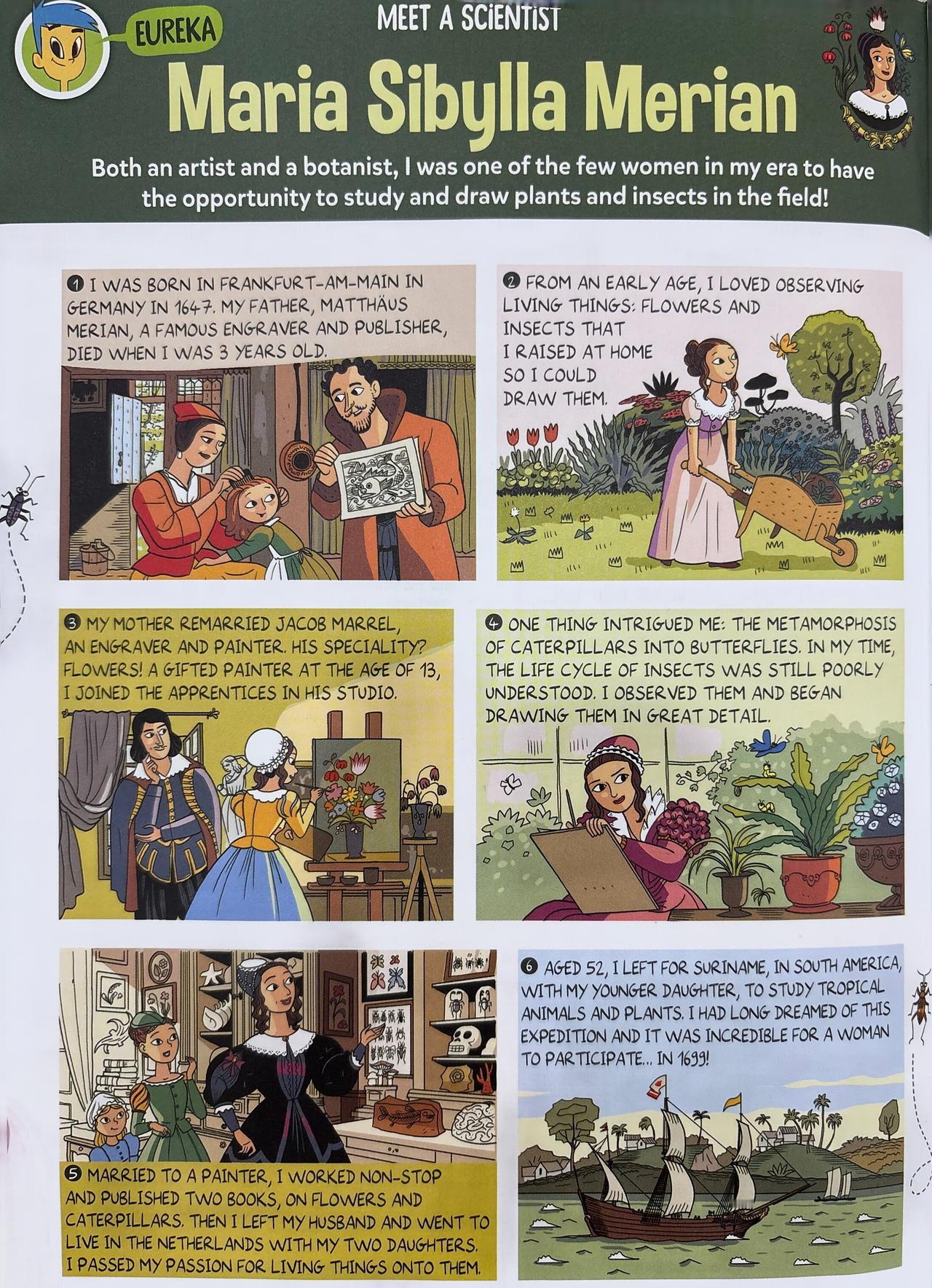 这是这周女儿在读的科普笔记,查了一下又无意超前学了。 原来Maria Sibylla Merian现在还在高中英语教材里,头像印在德国五百马克纸币上。三百年前,揭开蝴蝶蜕变的秘密。昆虫变态发育metamorphosis. 玛丽亚·西碧拉·梅里安(Maria Sibylla Merian) 瑞士博物学家和科学插画家 她是第一个将昆虫及其的栖息地汇集成一个单一生态结构的科学家。Merian发现了许多人们过去不明白的植物与昆虫真相,其观察纠正了当时“昆虫是从泥土里长出来”的错误认知。Merian对蝴蝶尤其感兴趣,当时没有人真正了解毛毛虫和蝴蝶之间的关联。1679年,她出版一本关于《昆虫变态》的书,书中充满科学注解与插图。因此她被认为是昆虫学早期最重要的贡献者之一。为了纪念她,1992年德国发行的500马克纸币,背面是她所绘的毛毛虫和蒲公英,正面则是Merian的画像。 Three hundred years ago it was widely believed insects spontaneously appeared from dust, mud, or rotten meat.三百年前,人们普遍认为昆虫是从灰尘、泥土或腐肉中自发出现的。 Then Maria Sibylla Merian came along and changed science forever. The 17th Century artist and naturalist is celebrated as one of the world's first ecologists. 玛丽亚-西比拉-梅里安的出现永远地改变了科学。这位 17 世纪的艺术家和博物学家被誉为世界上最早的生态学家之一。 查了一下还有BBC纪录片和维基百科可以继续拓展。 网页链接