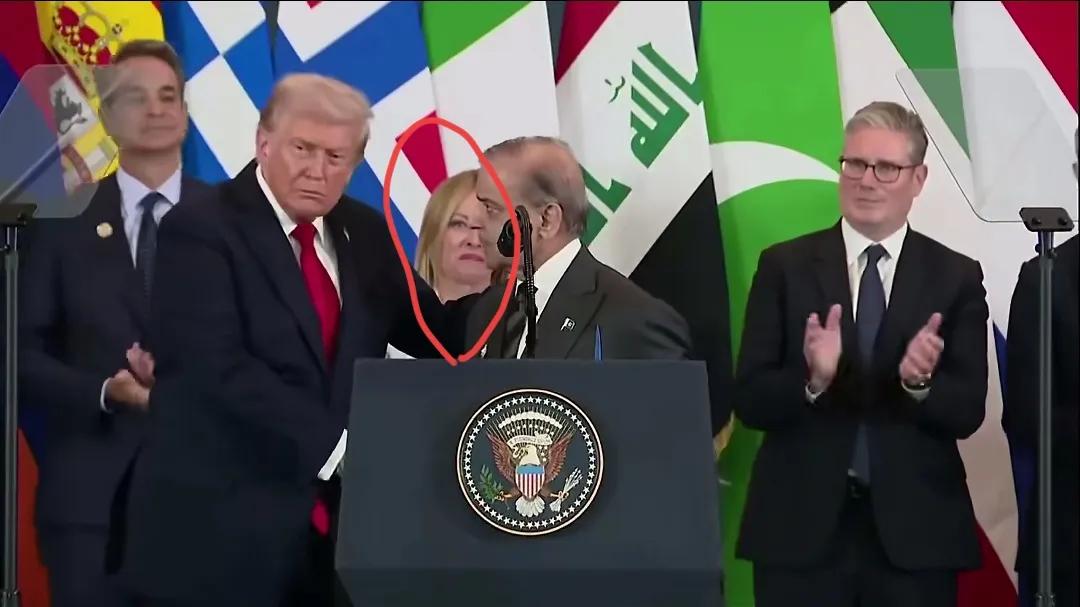 梅洛尼的表情是亮点! 巴基斯坦总理在表扬特朗普,后面梅洛尼的表情让人异想翩翩啊[