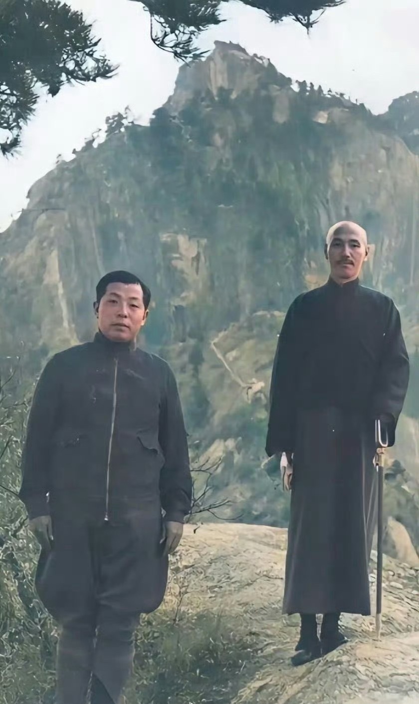 西安事变前夕,张学良与蒋介石一起游玩爬山的照片。照片中蒋介石目光炯炯,意气风发!