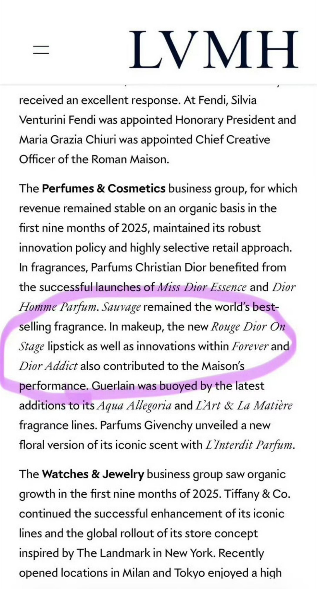 LVMH 2025 Q3财报,提到了🦅美妆线成绩亮眼哎。