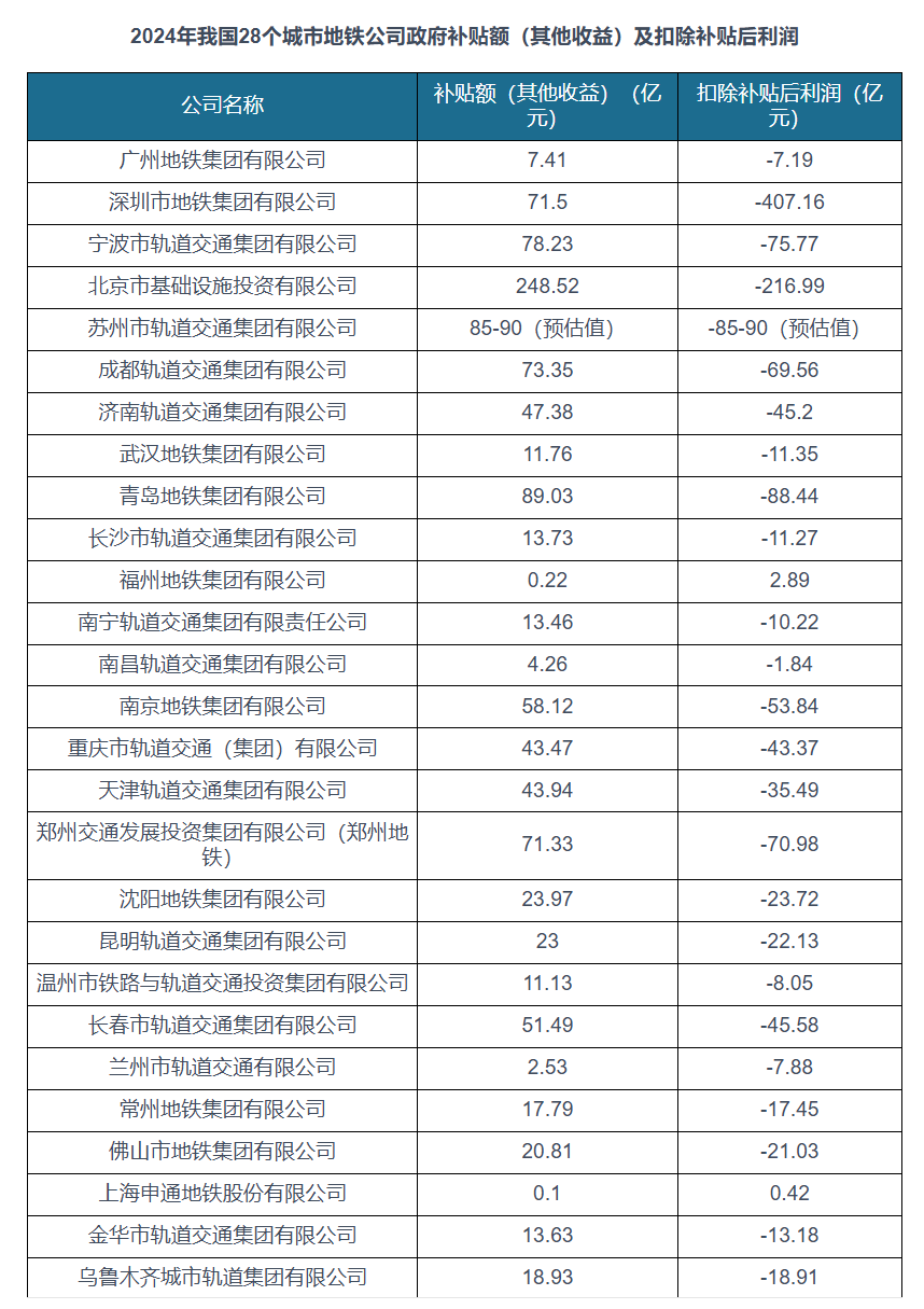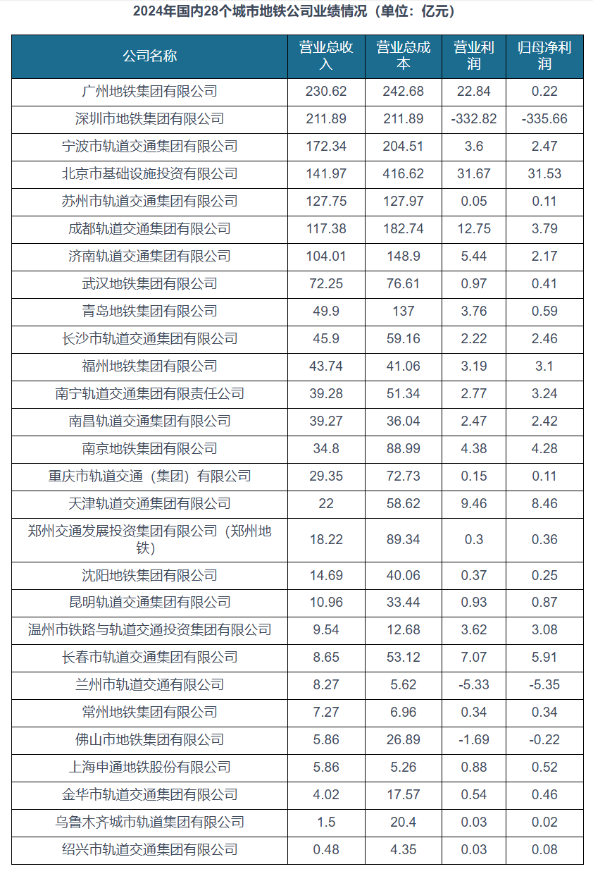 各个城市的轨道交通不赚钱,已经是业界共识,位列全国第4的成都地铁同样没能解决好这个行业难题。 从官方公布的年报等数据来看,成都地铁是赚过钱的,但一个重要的前提是,当年得有成都方面的补贴,还得是大额补贴,“有补贴,就有盈利,不补贴,就得亏损”,光鲜亮丽的成都地铁,终究没能摆脱自我造血能力不足的问题。 一座城市轨道交通的经济账,从来都不是看表面的费用简单增减。 一边是1号线、2号线、4号线高峰时挤成相片,一边是部分新线路客流不足、空空荡荡,如何平衡建设速度与运营效益,成都也在摸索中。 成都修地铁,成本较高,按照行业报告的说法,西部地区新建地铁平均每公里造价高达2.8亿元,比东部地区高出10%以上。 成都地铁超过700公里的运营里程,按照平均造价测算,累计投资在2000亿元左右。这让成都不得不顶着成本压力搞有效管控,并摸索出了“运营-开发-TOD-市政配套”的融汇玩法,TOD项目开发与线路建设同步规划,线路周边土地溢价提前反哺建设成本,这非常考验城市管理者和建设方的微操、控盘能力,而成都做到了。 相比之下,重庆、西安等地的轨道交通建设,在前置规划方面,有需向成都学习借鉴之处,以消弭当地普遍高出5%以上的建设成本。 2024年,全国20多家地铁公司,扣除补贴后还能盈利的,只有上海、福州等少数城市,成都2024年的财务数据颇为好看,全年营业总收入117.38亿元,归母净利润3.79亿元,但扣除73.56亿元的政府补贴后,实际经营亏损达69.56亿元。 补贴盈利是行业惯例,票务收入是基本盘,TOD是希望所在。 成都客流量尚可,但客流规模距离北京和上海,有着10亿人次以上的差距,这在很大程度上限制了票务方面的增长空间。 已经启动的24个TOD项目被视为成都地铁盈利的希望所在,“轨道造城”确实也带来了预期内的增值收益,成都的非票务收入,从2020年的18%提升至2024年的27%,超过西安的15%、兰州的12%。 今年以来的轨道交通运营态势,仍是成都占优,但主要是同行衬托。2025年上半年,重庆轨道交通实现营收13.5亿元,净利润为1.49亿元,其原因是财务费用骤降,从18.21亿降至-0.03亿,被认为不具备多大的可持续性。西安营收下降了18.16亿元,同比下滑12%,补贴缩水5.02亿元,同比下滑30%,双重挤压之下,净亏损扩大到18.52亿元。 与其他轨道交通的头部城市,特别是能盈利的城市对比,成都一来非票务收入还有待提高,深圳地铁虽然年亏300多亿元,但其物业开发利润是成都的3倍以上,还在以住宅销售为主的成都TOD,完全可以继续向深圳学习;二来补贴力度不够顶级,北京地铁能拿到超240亿元的补贴,成都数十亿元的补贴只是中等水平,当然,成都地铁连续十多年获得高额补贴,已属不易。 成都地铁的技术降本路径倒是可圈可点,目前已经实现百公里运营能耗从2020年的12万度降至2025年的9.8万度,能源消耗成本比西安低了15%,这方面重庆也有不错的表现,成渝完全可以协力拓展。 与不少城市面临“线建好了,人没跟上”的客流错配问题不同,创下多个轨道交通领域快速建设纪录的成都地铁步履稳健。成都地铁的经济账并不难算,700公里线网带来的,是全城35%左右人口的800米通勤覆盖,超过4000亿元的轨道交通产业规模,以及账本之外,成都精心打造“轨道上的都市圈”的各种潜在收益。