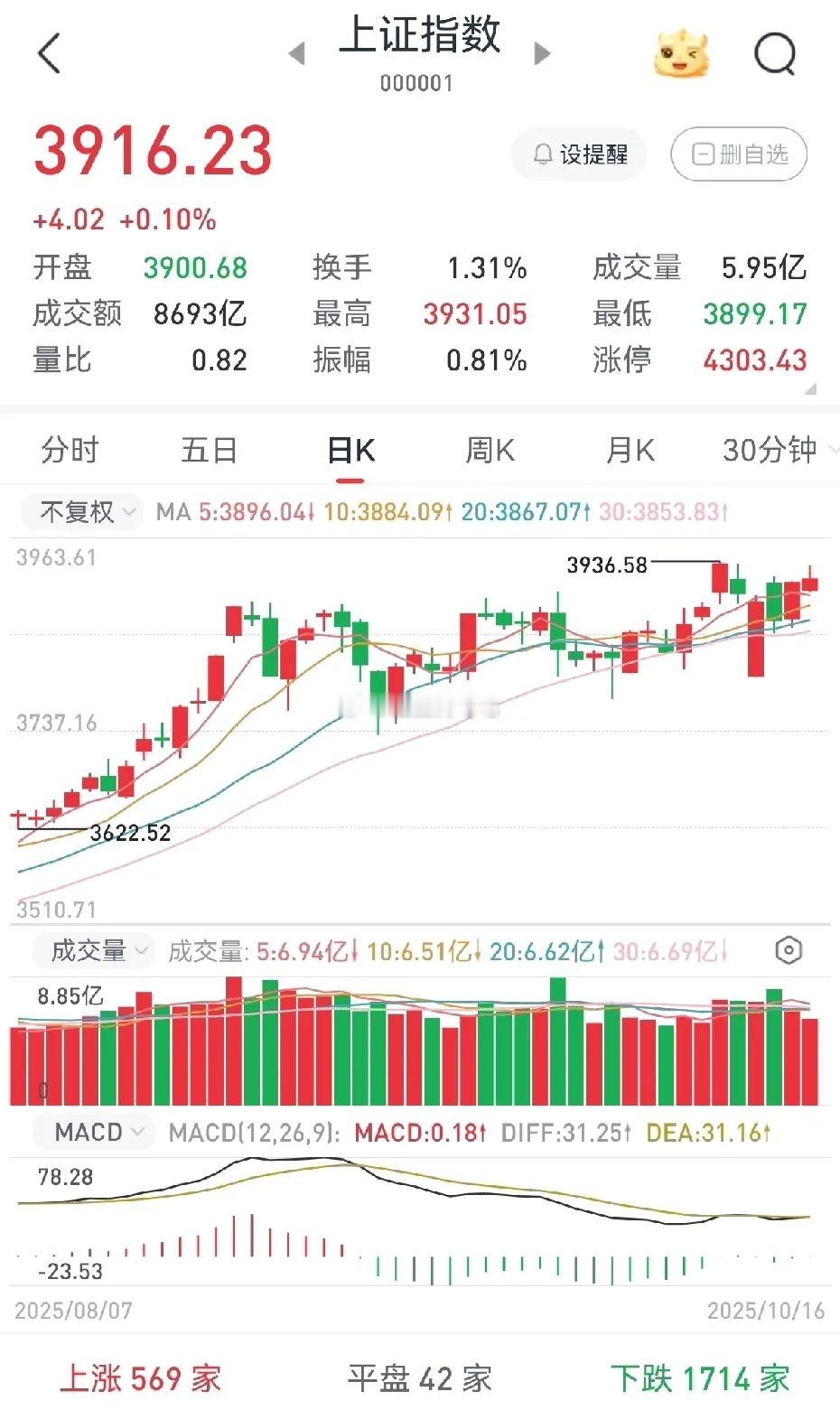 我认为今日大盘指数飘红、个股下跌的现象难以持续。因为金融等权重股只能维持大盘指数现状,要推动大盘上行,需权重与科技携手。若明日大盘在金融等权重股上涨时,科技板块能重振雄风,那么我预计明日大盘指数很可能触及3950点。