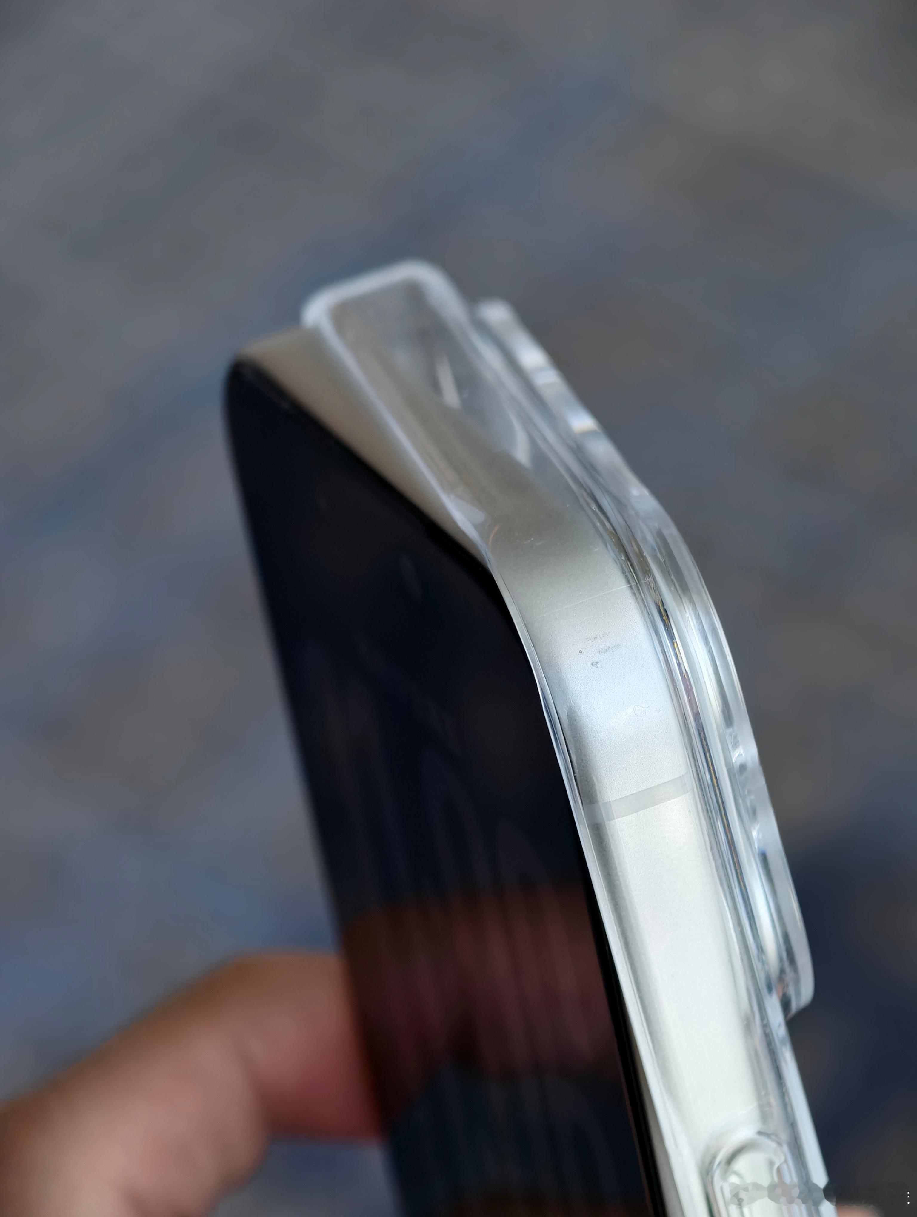 偶然发现天天带硬壳的iPhone17 Pro中框有痕迹,仔细一看,是壳内部做工差突出位置挤压出来的......