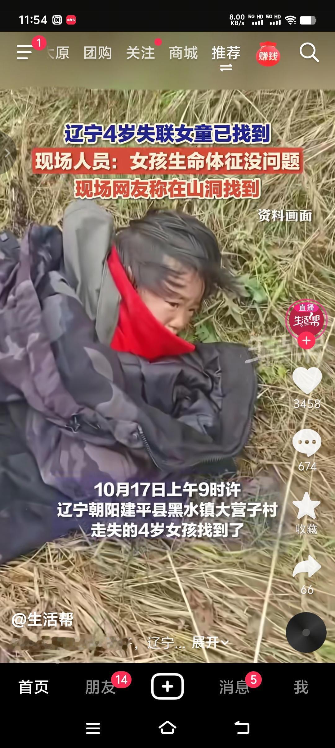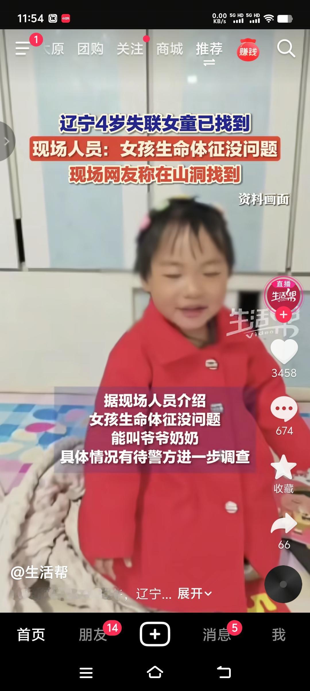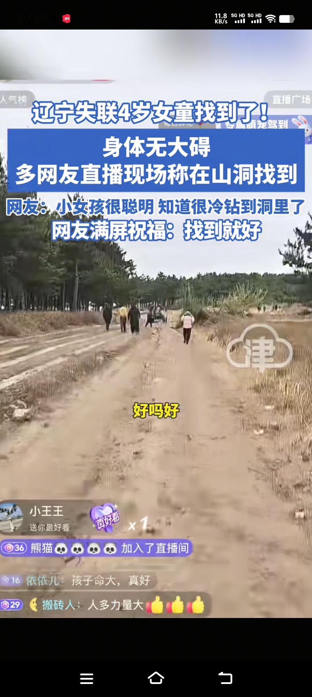 万幸,万幸!辽宁丢失的4岁女童找到了。 生命体征平稳,能叫爷爷奶奶,还能与救援人