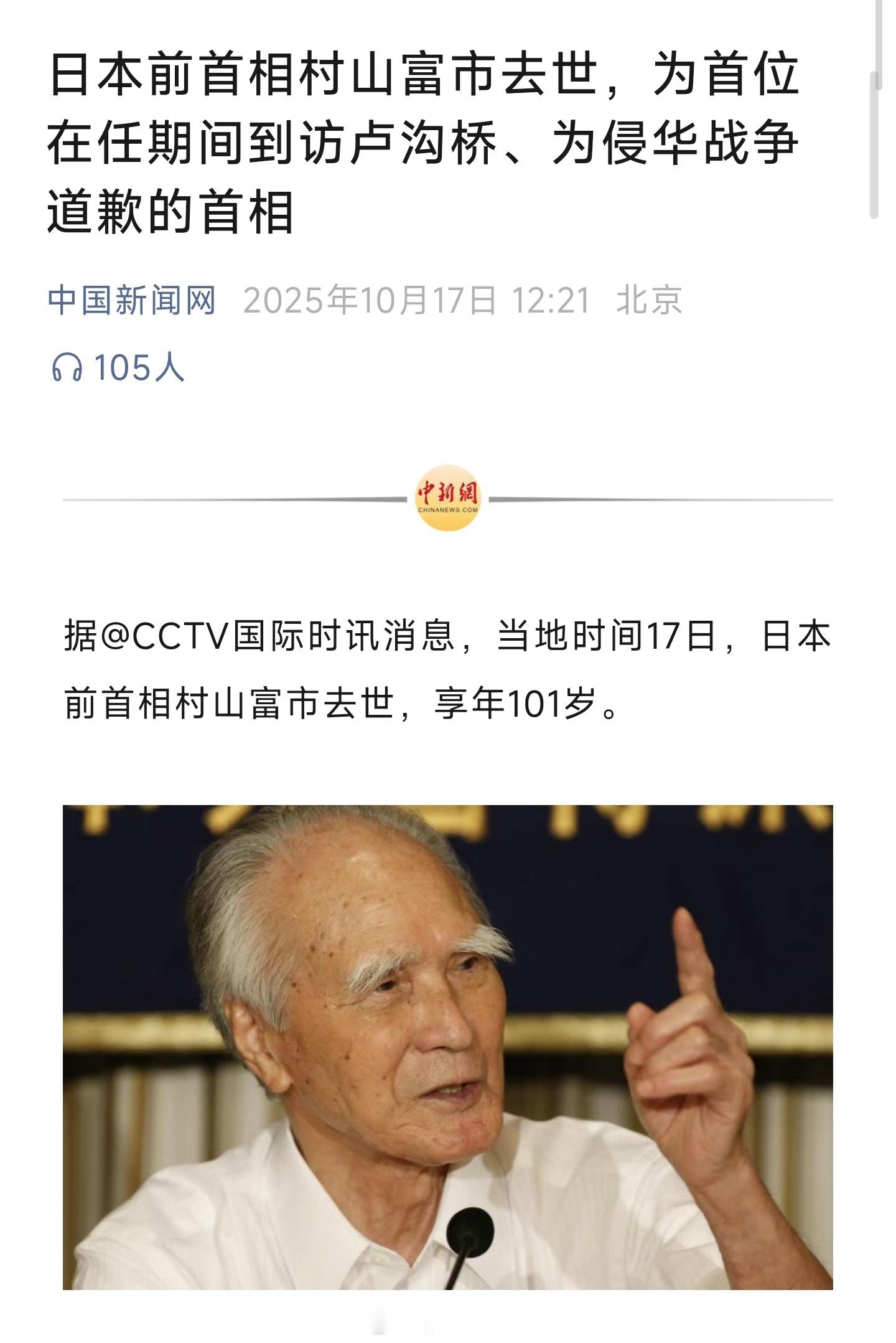 众星陨落,决赛圈已经不存在了日本前首相村山富市去世