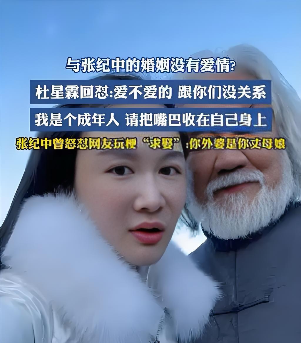 有人说张纪中老婆怒怼网友太傲慢,没有上百亿不配娶她女儿,但我觉得他老婆一点不傲慢,如果说杜星霖侮辱人很没家教,但拿人家一岁女儿开玩笑不是更没有素质吗。 虽然老夫少妻天天在网上秀恩爱很膈应人,但也说明他们夫妇的恩爱和甜蜜,普通人完全可以去学习一下人家对生活的热爱。 有人也许会说,张纪中有钱当然活的滋润,但是他的钱也不是天上掉馅饼,也是他努力得来的。普通人即便是没钱,但少点嫉妒心也可以过的好。 不过也想跟杜星霖说一句,既然想吃流量这碗饭,就要承担流量的反噬,实在玻璃心就退网好了。