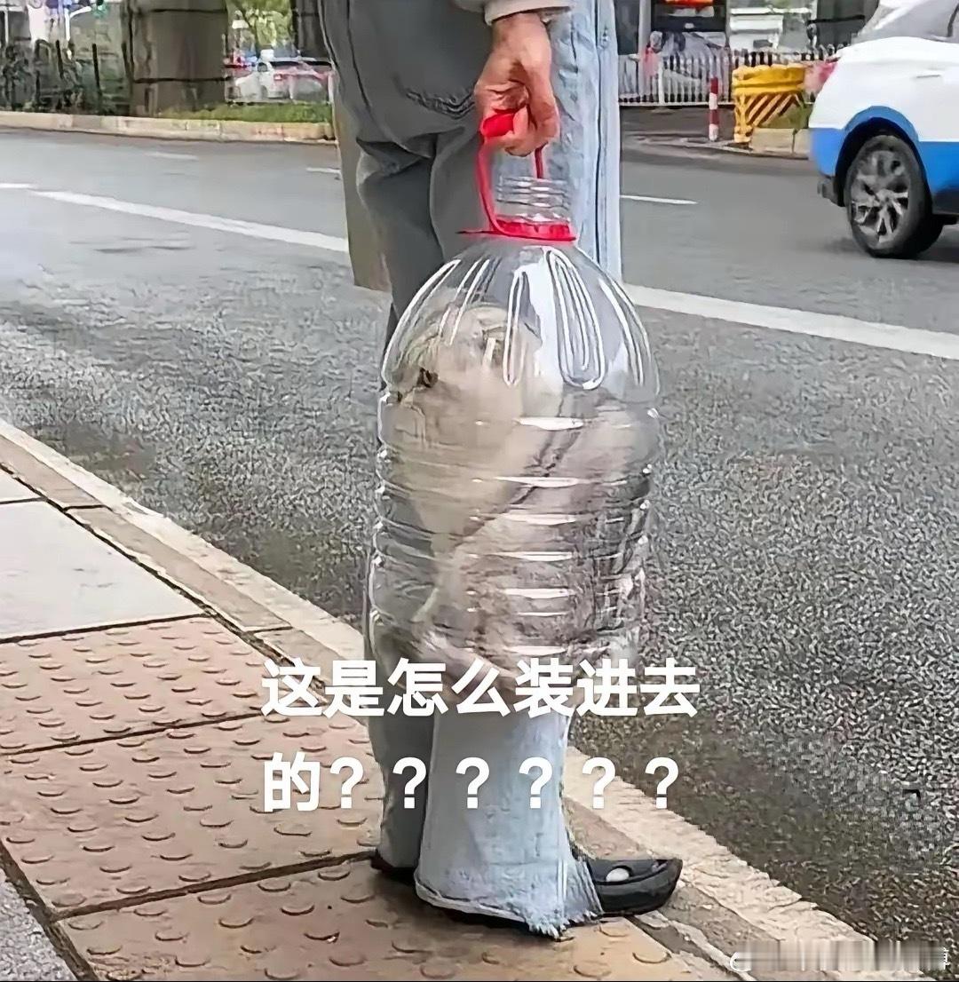从瓶口劈开→把猫放进去→把瓶盖子拧上盖好