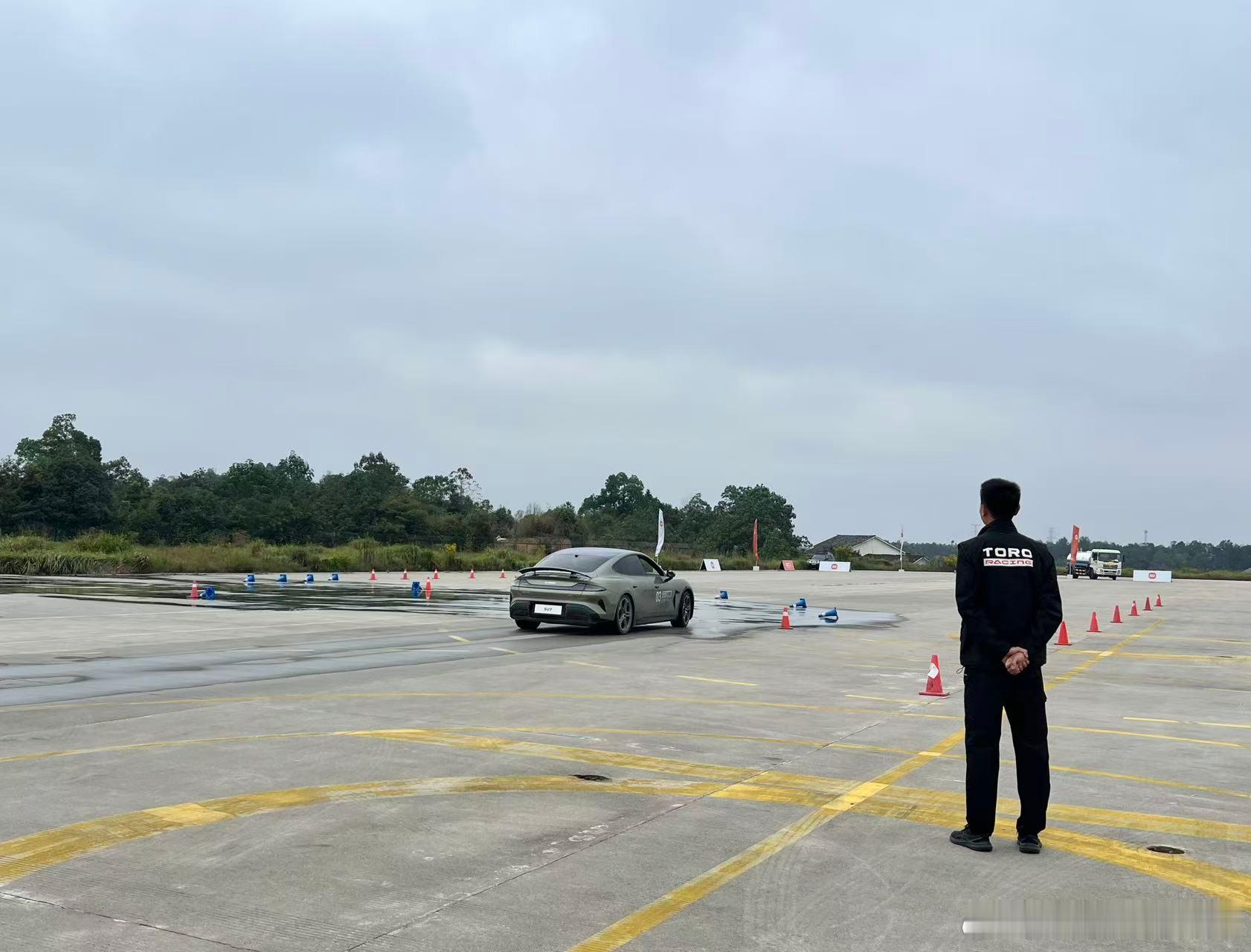 这四项训练中对我来说印象最深的是低附着路面驾驶训练。我几乎没有在在雨天过车,在进行别的项目时地面的情况是正常的,但是到了撒了肥皂水的湿滑路面时,确实很容易打滑,这对我刹车和速度的把控要求更高。这项训练能让我在教练的陪同下体验到低附着路面驾驶的一些风险和了解到正确做法,是非常有用的。