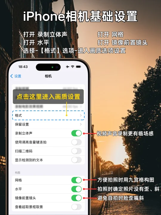 嘿嘿😬刷到我就说明你已经买到iPhone 16了[黄金薯R] 如果手上还没有的话,那也在路上了[得意R] 新手机到手有几个相机设置可以让画质更好,使用新相机更方便喔,跟着我一步一步教你设置[举手R] iPhone16全系都增加了更加好用的拍照功能,但是也拍照这件事变得更加复杂了,需要耐心看完内容喔 调色教程的参数需要根据照片实际情况做调整,这个只能作为参考哦