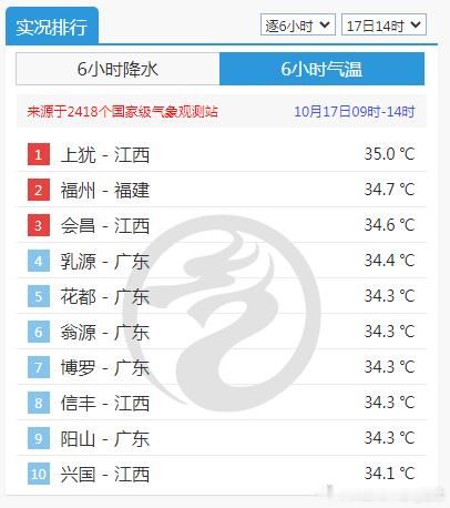 【南北冷热不均】今天截至14时最高,江西上犹出现35℃高温,创当地最晚高温日纪录