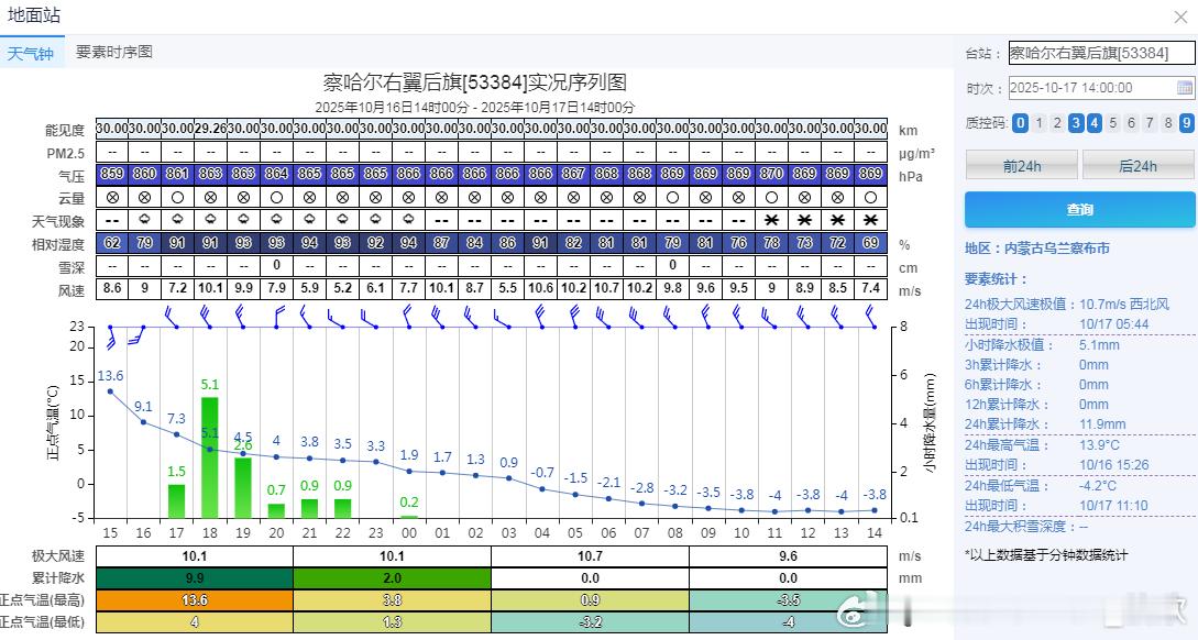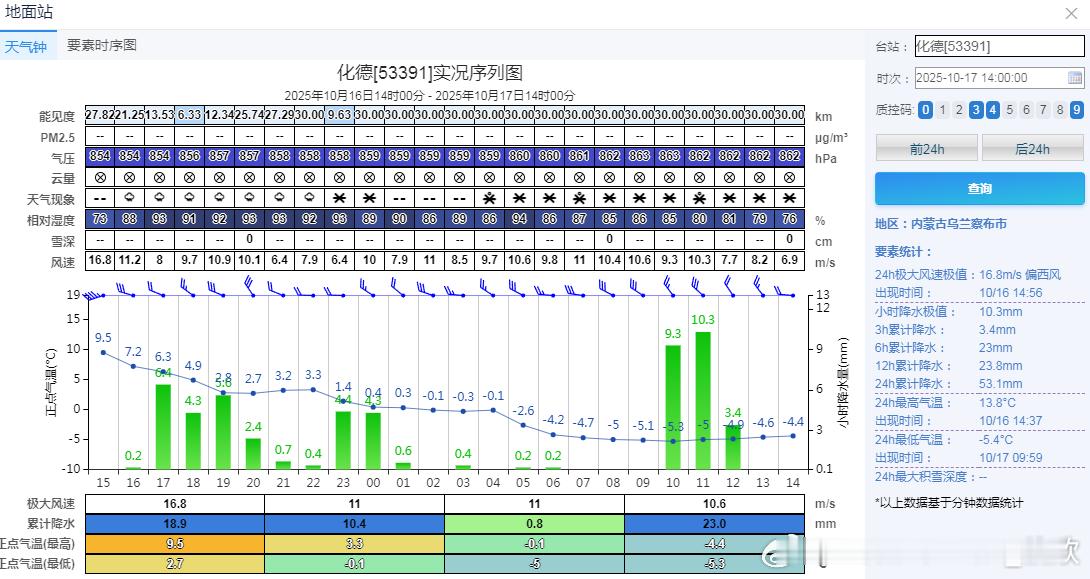 比如内蒙古化德降17.9℃、察哈尔右翼后旗降17.4℃、河北康保降17.2℃,为今天14时降温前三站点。而且察哈尔右翼后旗和化德今天白天气温出现倒降或者躺平走势,下午气温比凌晨还低,下午气温不到0℃,还飘起了雪花。南北方,夏冬并立。