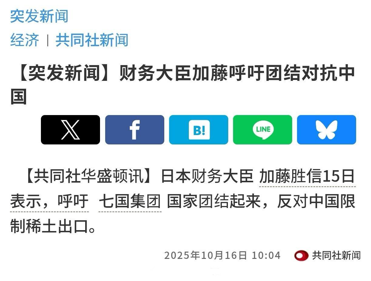 据共同社消息,日本财务大臣加藤胜信呼吁: 呼吁G7团结起来,对抗中国的稀土管控。 加藤的这番“对抗呼吁”,并不是第一次出现。早在2010年中日钓鱼岛争端后,日本就对稀土的依赖产生了极大的警惕,开始寻求多元化进口渠道。 可问题在于,全球范围内即便有稀土矿,也难有国家具备中国在分离提纯、规模加工上的产业能力。 七国集团中,除了美国还在力图通过《通胀削减法案》扶持本土稀土产业外,其他国家的动作都比较象征性。 欧洲的绿色转型计划喊得响,但真要在稀土问题上“自主可控”,短期内几乎没有可能。至于日本,虽然在材料科学上有过人之处,但稀土加工产业的基础薄弱,仍难以摆脱对中国的依赖。 所以,加藤胜信的这番话,既是对中国稀土政策的“担忧”,更是对本国在全球产业链中无法自主的一种无奈。 他选择在G7财长会议场合发出这个声音,其实是想把这个问题从单纯的资源安全,提升到所谓“经济安全”的层级。 用他的话说,就是“某些国家对关键资源的出口控制,可能会破坏市场的稳定性和公平性”。 当然,中国并不是在“搞垄断”或者“限制自由贸易”。近年来,中国对稀土行业的管理更趋规范,是为了防止无序开采、环境破坏以及资源流失。 这一系列政策,是基于国家长期利益和可持续发展的考量。而不是像某些国家动不动就用“国家安全”做理由封禁中国企业那样,表面说是市场,实则搞保护主义。 中国的稀土政策并没有针对任何国家,反而是在推动全球稀土市场更加透明和理性。 那么,日本为什么偏偏要在这个节点上再次挑起稀土话题?一方面是国内经济复苏乏力,需要一个“外部挑战”来凝聚共识和注意力;另一方面,也是在为未来可能的国际合作谈判中争取更多筹码。 毕竟,资源焦虑背后,是技术焦虑、产业焦虑,甚至是国家战略方向焦虑。加藤胜信把话说得那么重,其实是想把中国描绘成一个“必须联合应对”的对手,但问题是,就稀土而言,G7能联合出什么实质性的“对策”吗? 现实是,中国的稀土产业已经不是简单的资源输出,而是包括上游开采、中游加工、下游应用的完整体系。 这不是靠“联合声明”就能打破的。更重要的是,中国的稀土政策并没有关闭合作的大门,反而是欢迎在规则和环保前提下的多边合作。 谁愿意遵守规则,谁就能在这个市场里找到位置。反观G7内部,真正愿意投入资源搞稀土产业的国家凤毛麟角,大多数还停留在“政策提法”阶段。 日本此番呼吁,更像是一种“外交姿态”而非实际动作。它当然知道中国稀土体系的成熟不可替代,但还是要在国际场合表达“态度”,以示“立场坚定”。 但态度能解决问题吗?如果没有实质性的产业政策配合,没有足够的资金投入和技术积累,光靠“G7团结”四个字,是难以撼动中国在稀土领域的话语权的。 在这样一个全球化波动加剧的时代,资源安全早已不是一个可以被“呼吁”解决的问题。真正的安全,是建立在能力和规则之上的。 加藤胜信的呼吁,听起来像是G7在努力发声,但更像是他们在承认一个事实:中国的稀土,他们暂时离不开。与其对抗,不如合作;与其担忧,不如建设。 素材来源:共同网 快讯:日财长呼吁G7携手应对中国稀土管制 - 共同社
