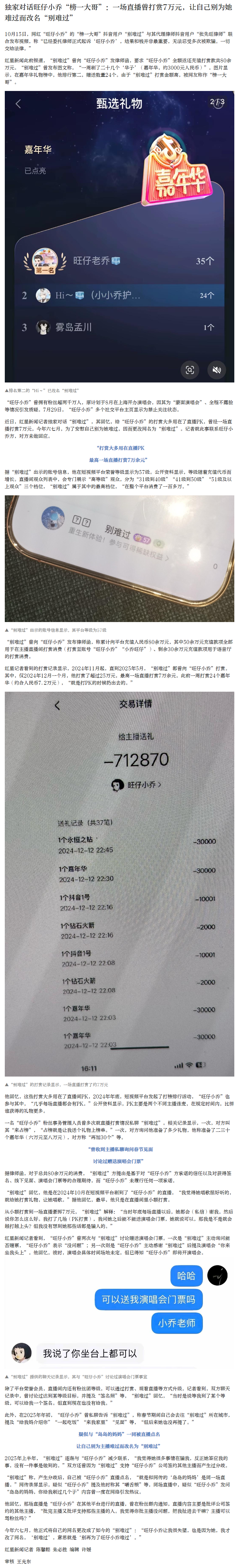 【#对话旺仔小乔榜一大哥#】#榜一大哥回应起诉旺仔小乔缘由#10月15日,网