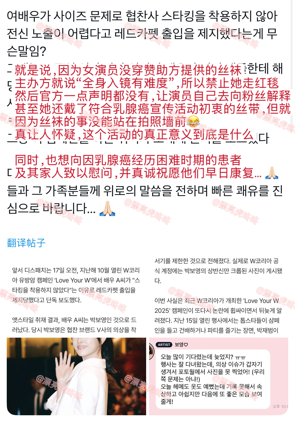 【热贴】佩戴了“乳腺癌活动标志性丝带”的朴宝英,因为“没穿赞助丝袜”被禁止进入W