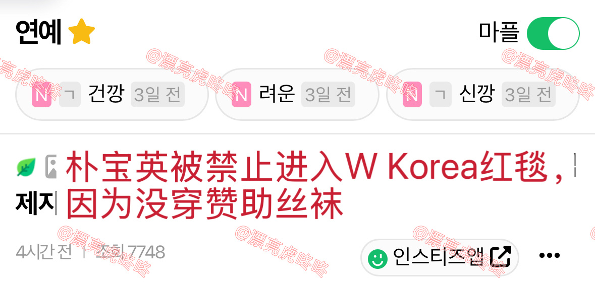 【热贴】佩戴了“乳腺癌活动标志性丝带”的朴宝英,因为“没穿赞助丝袜”被禁止进入W Korea红毯