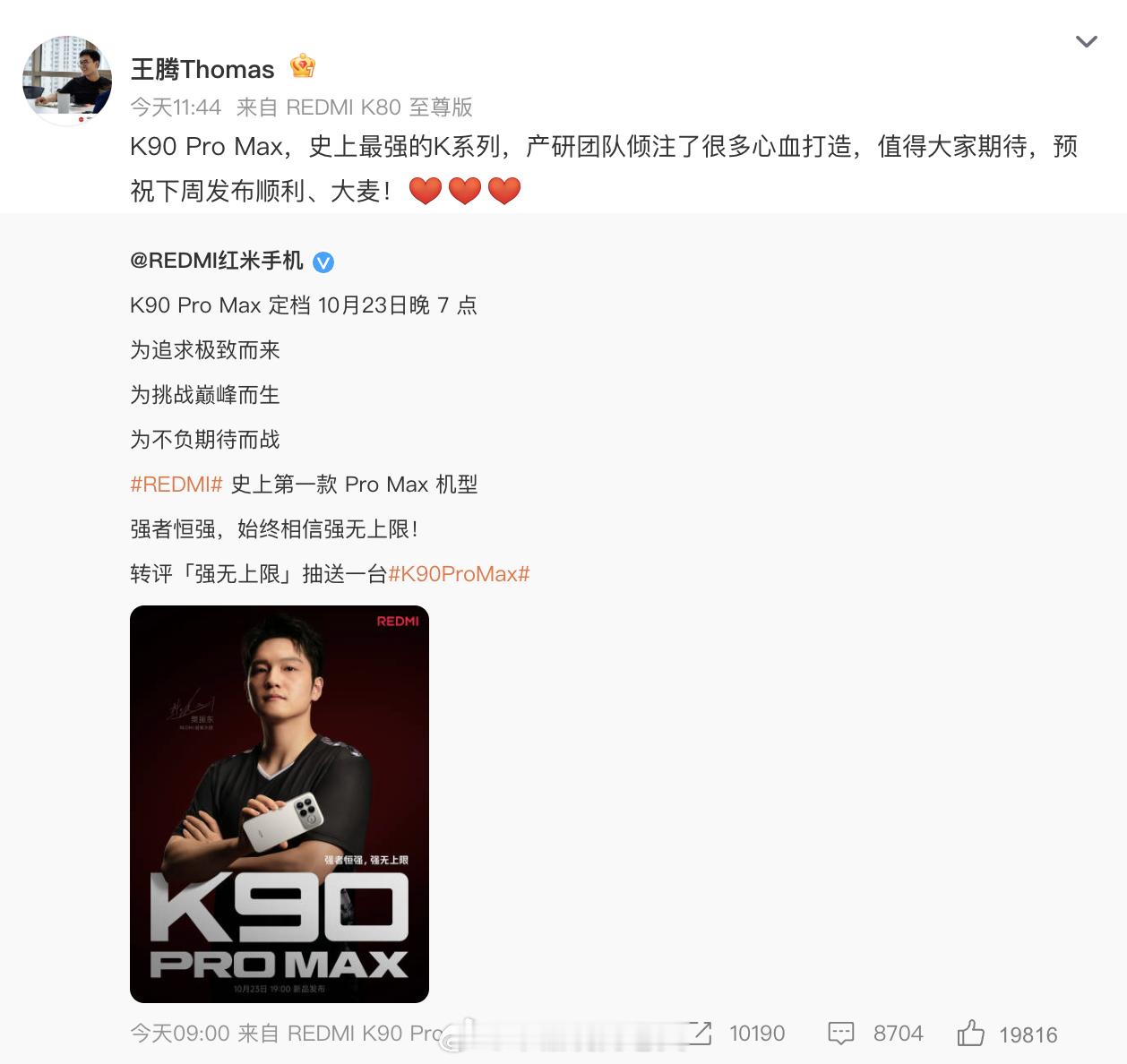 王腾宣传K90ProMax说明还是有爱的,哈哈!不过由此可见,REDMI应该是