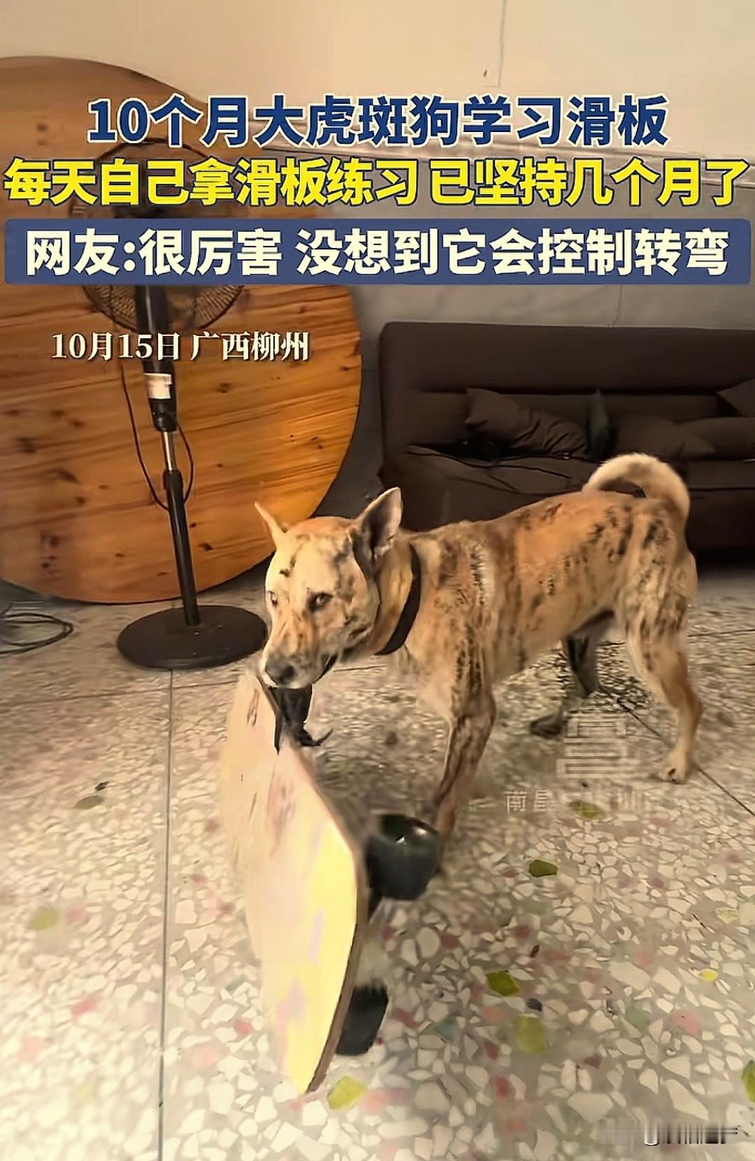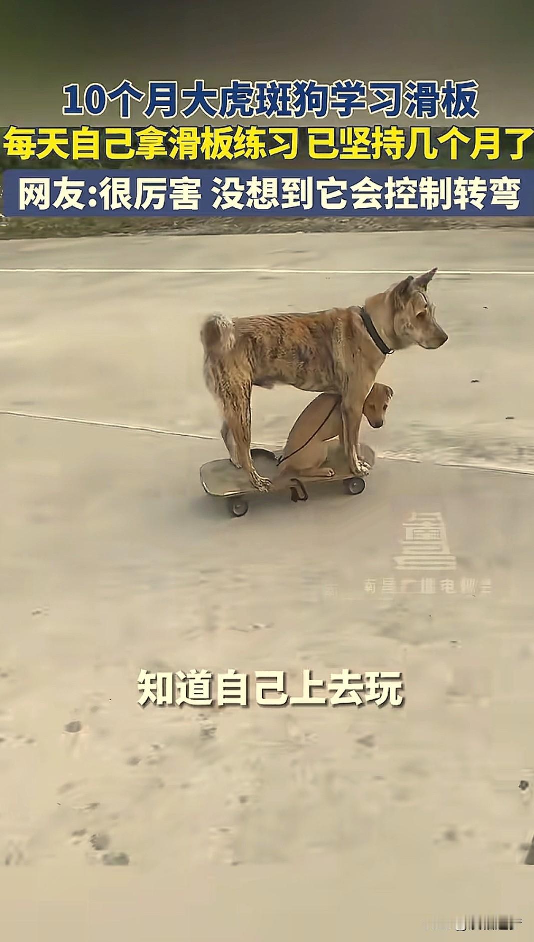 “成精了!”一男子在家中拍下神 奇一幕:家养的虎斑狗居然叼起了滑板车出去玩,它用前腿把滑板车一推,随后4条腿稳稳的站了上去,更绝的是,它还能带上小伙伴一起滑!男子把视频发到网上,网友看的眼睛都直了。网友:狗子会的我都不会! 男子透露,这不是虎斑狗第一次玩滑板,看视频就知道,这玩滑板的熟练程度不是一天两天练成的。原来这只虎斑狗只有10个月大,学滑板却学了好几个月,几乎每天早上起来,都要出去遛几圈,失败了就重新站上去。 并且这只虎斑狗不但能自己玩,还会把孩子放在滑板车上带着出去玩,更有意思的是,它叼出去玩够了,还会叼回来放好,这聪明劲一点也不让主人操心,比小孩子还懂事。 别看滑板玩起来比较容易,其实要学好稳稳的滑出去还需要不断的练习,可它偏偏喜欢挑战难度,“带孩子”不过就是顺手的事,遇上弯道还可以自主压弯,身躯微微一偏灵活自如,这方面更像是一个“专 业”的选手,比很多人都玩的溜,说它“成精了”都不为过。 有网友说:这毅力比我都强,我们至少百分之九十的人不会!看来只要肯学,都能学会! 也有人说:这狗相看起来邋里邋遢的,没想到还是狗中龙凤,应了那句“人不可貌相”,用在虎斑狗身上也很合适! 老话说:世上无难事只怕有心人。就像这只狗子,一件事坚持了小半年,终于成功,这成绩,都能完胜大部分人类了! 以前总觉得村里的狗子只能看家护院,没想到它在主人的示意下,还能这么聪明,真是让人长见识了。 (来源:南昌广播电视)
