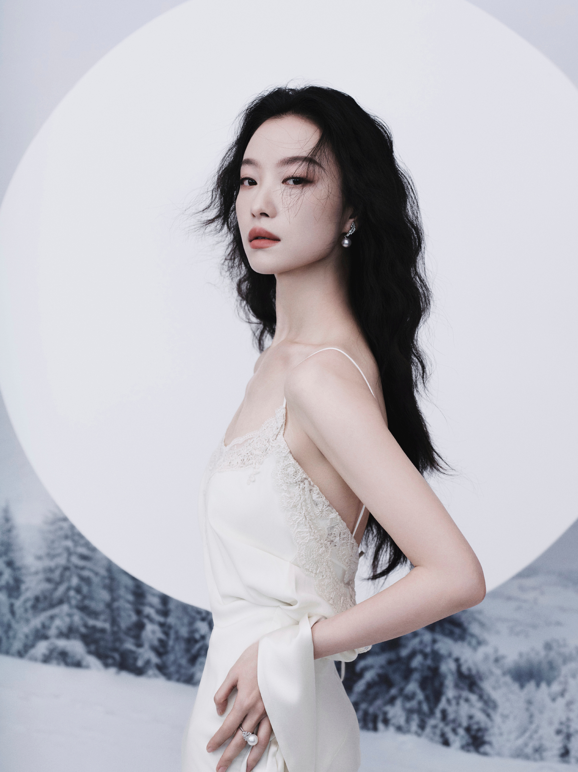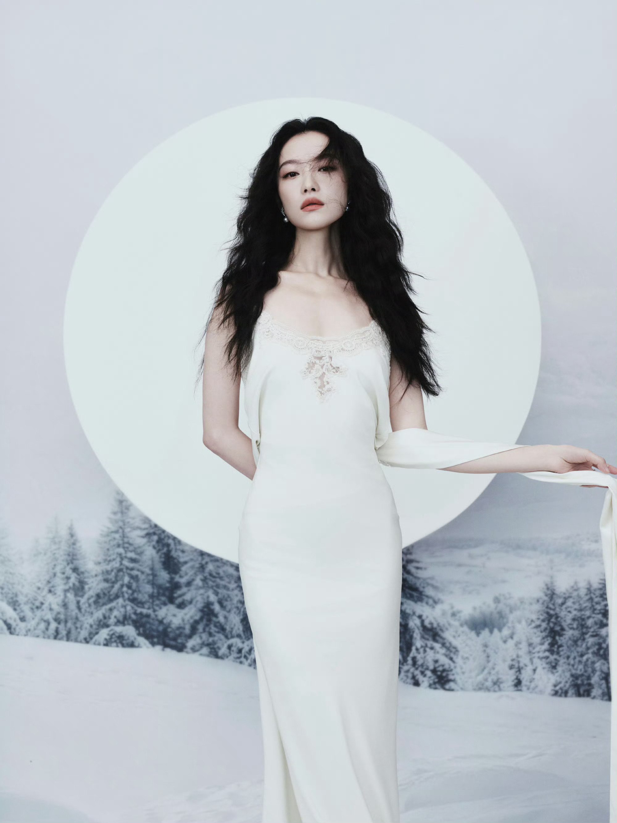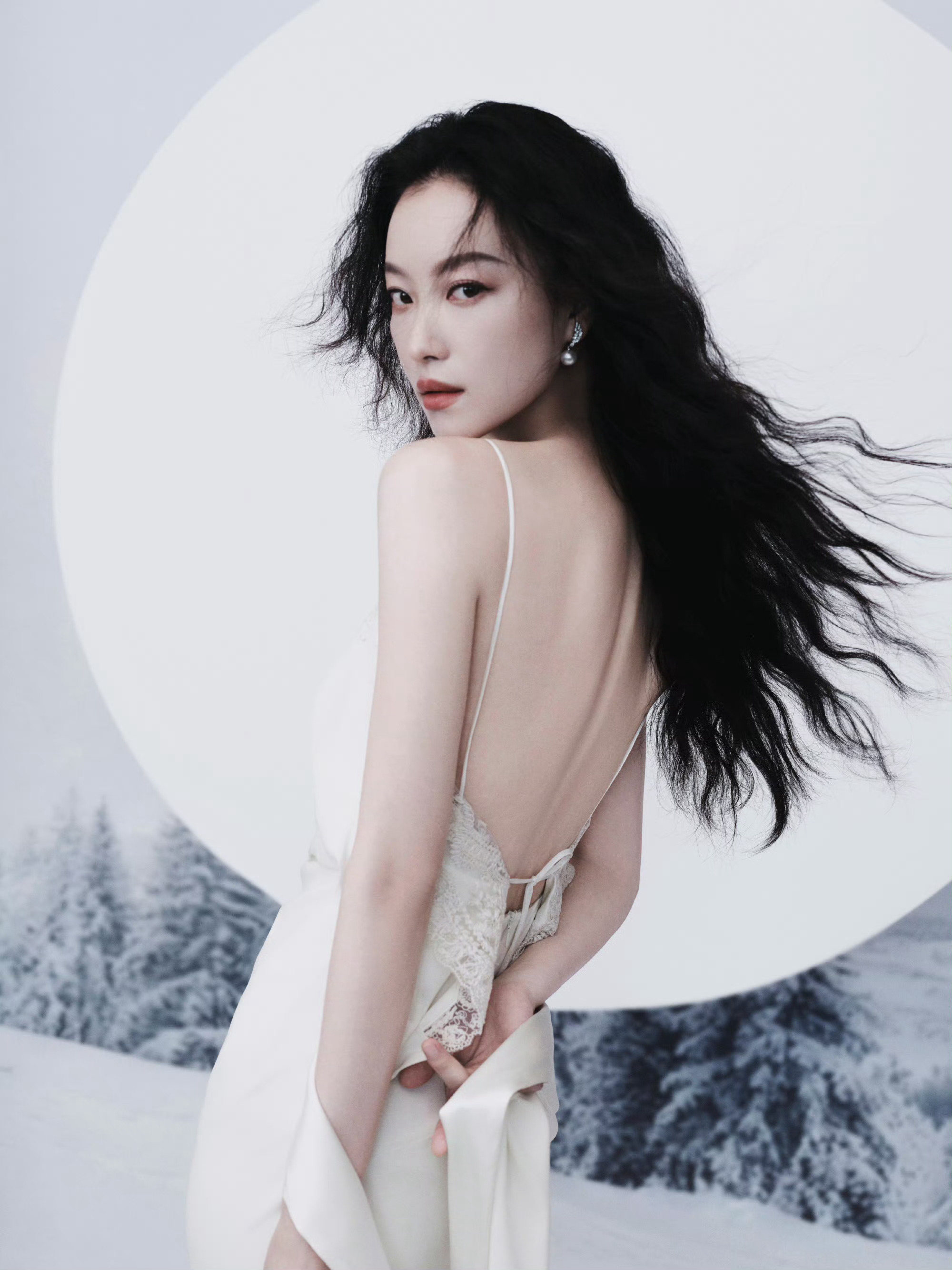 倪妮 Ermanno Scervino 2025秋冬系列白色吊带蕾丝长裙