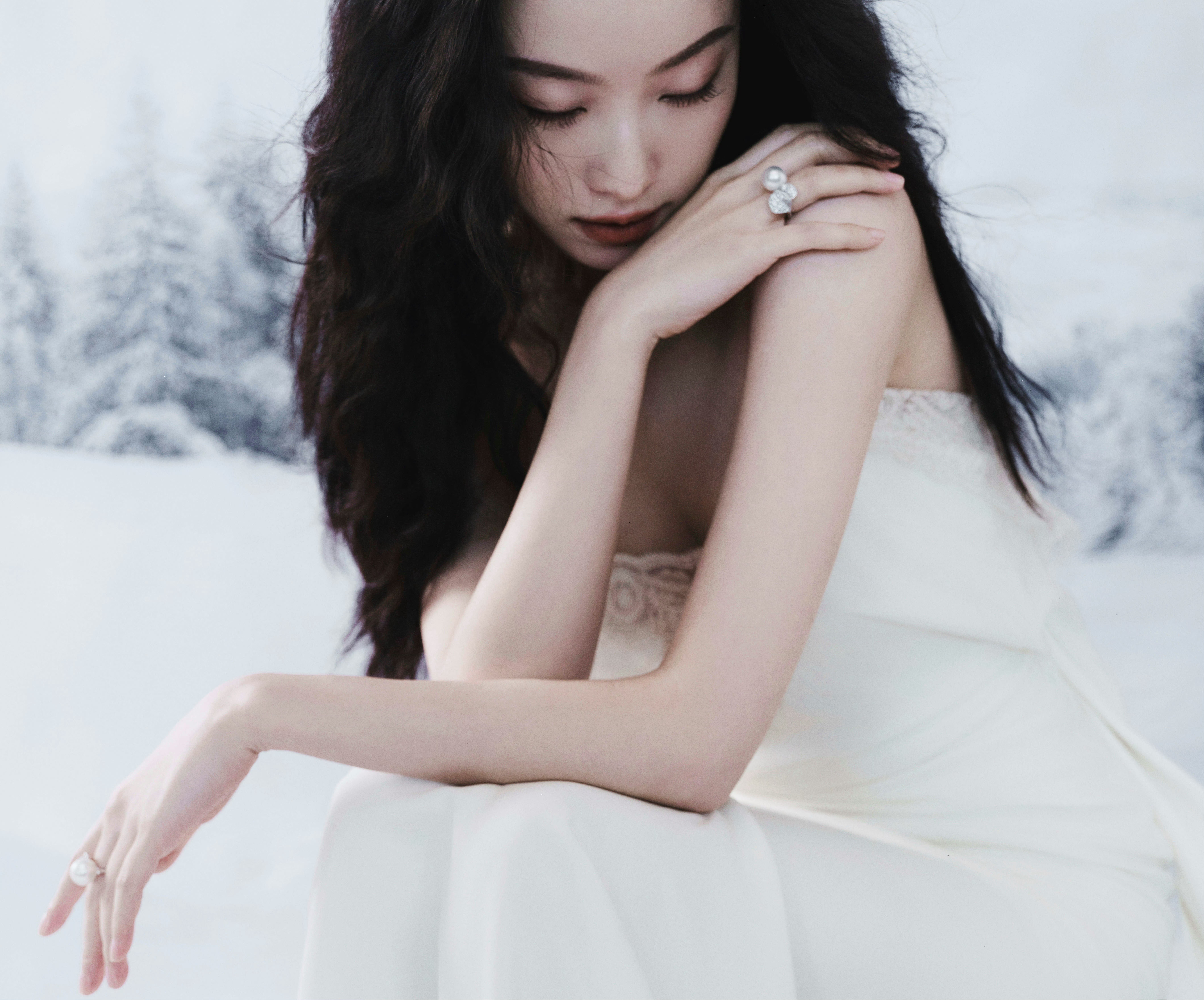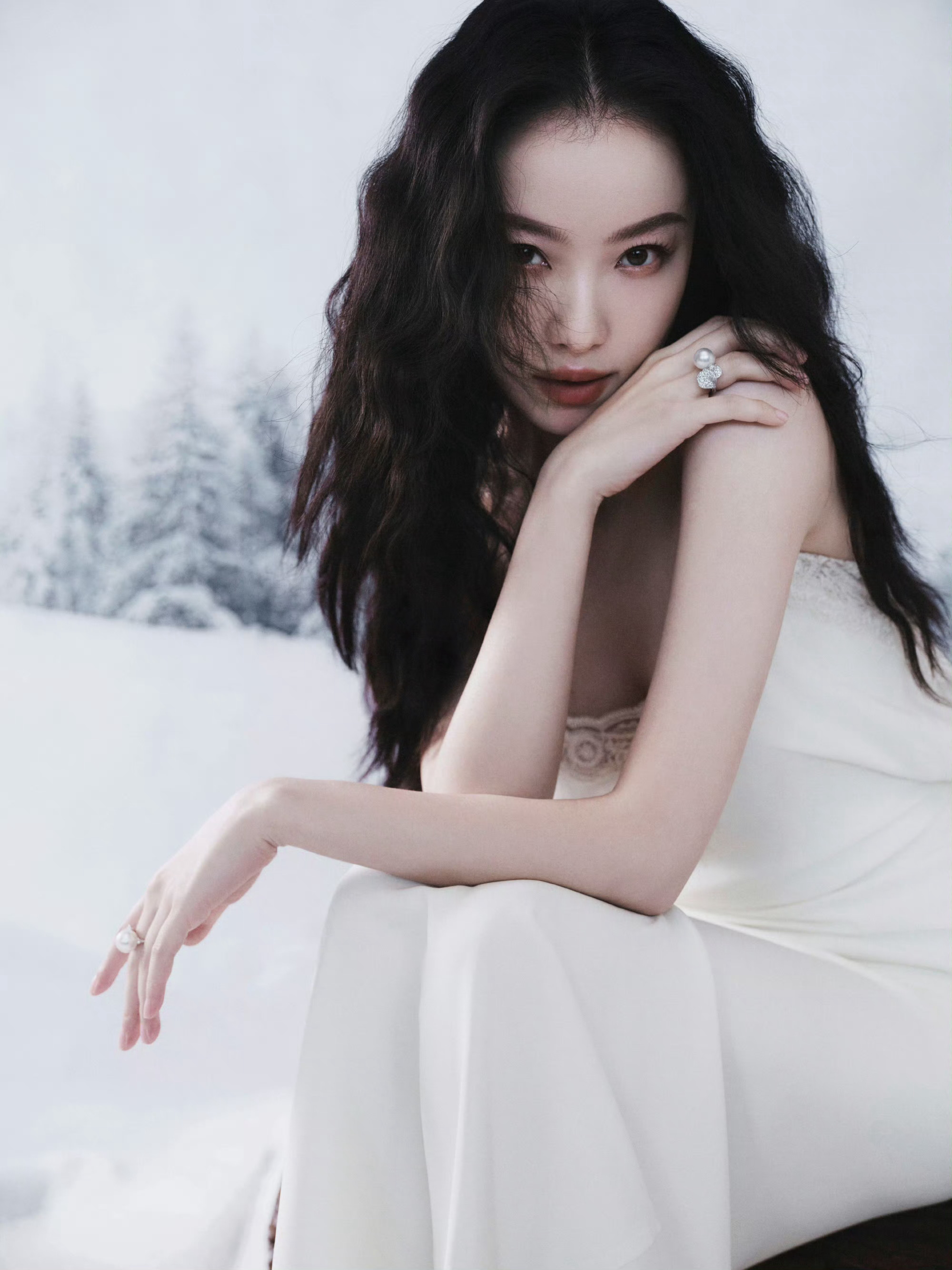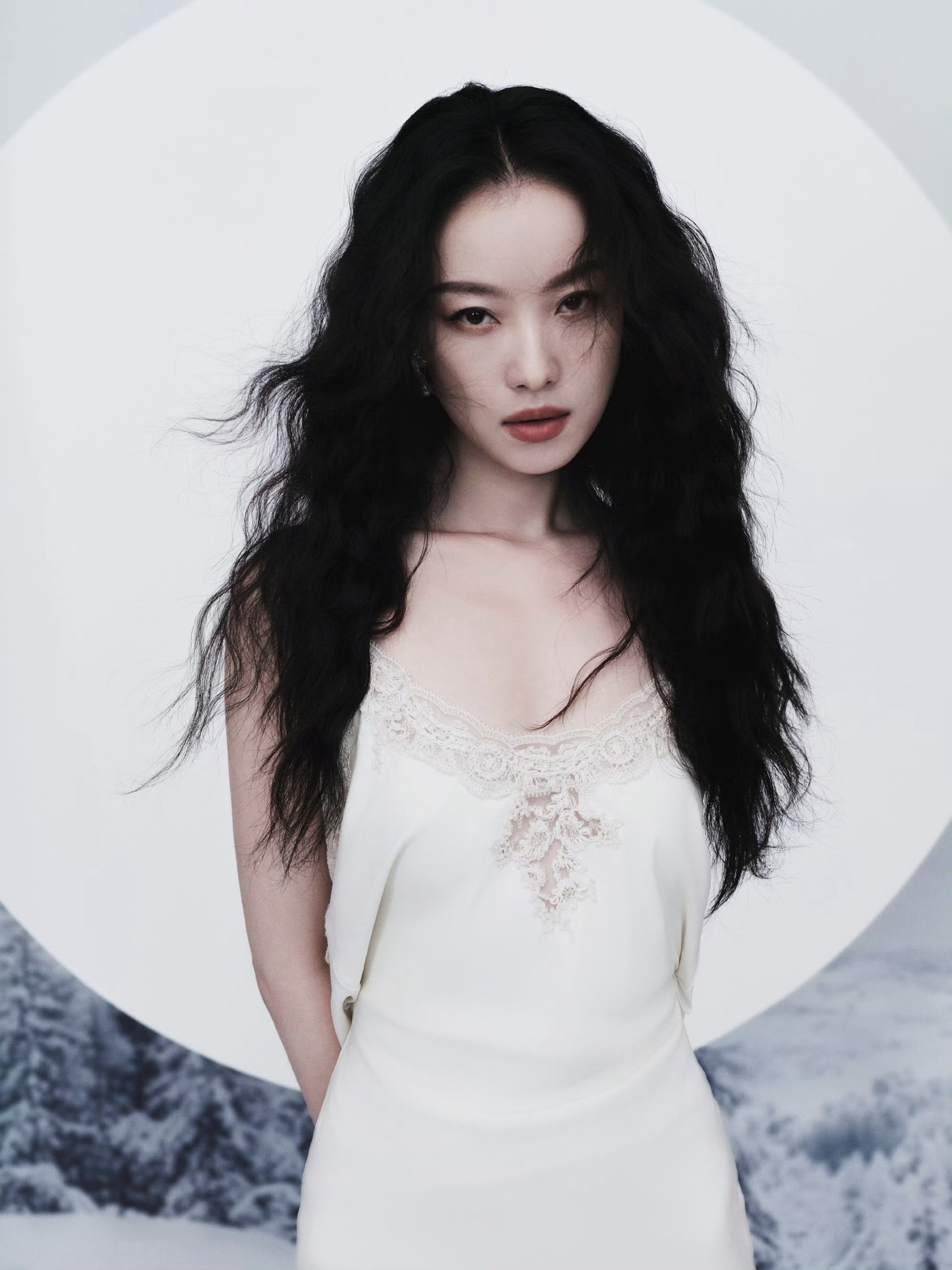 倪妮 Ermanno Scervino 2025秋冬系列白色吊带蕾丝长裙