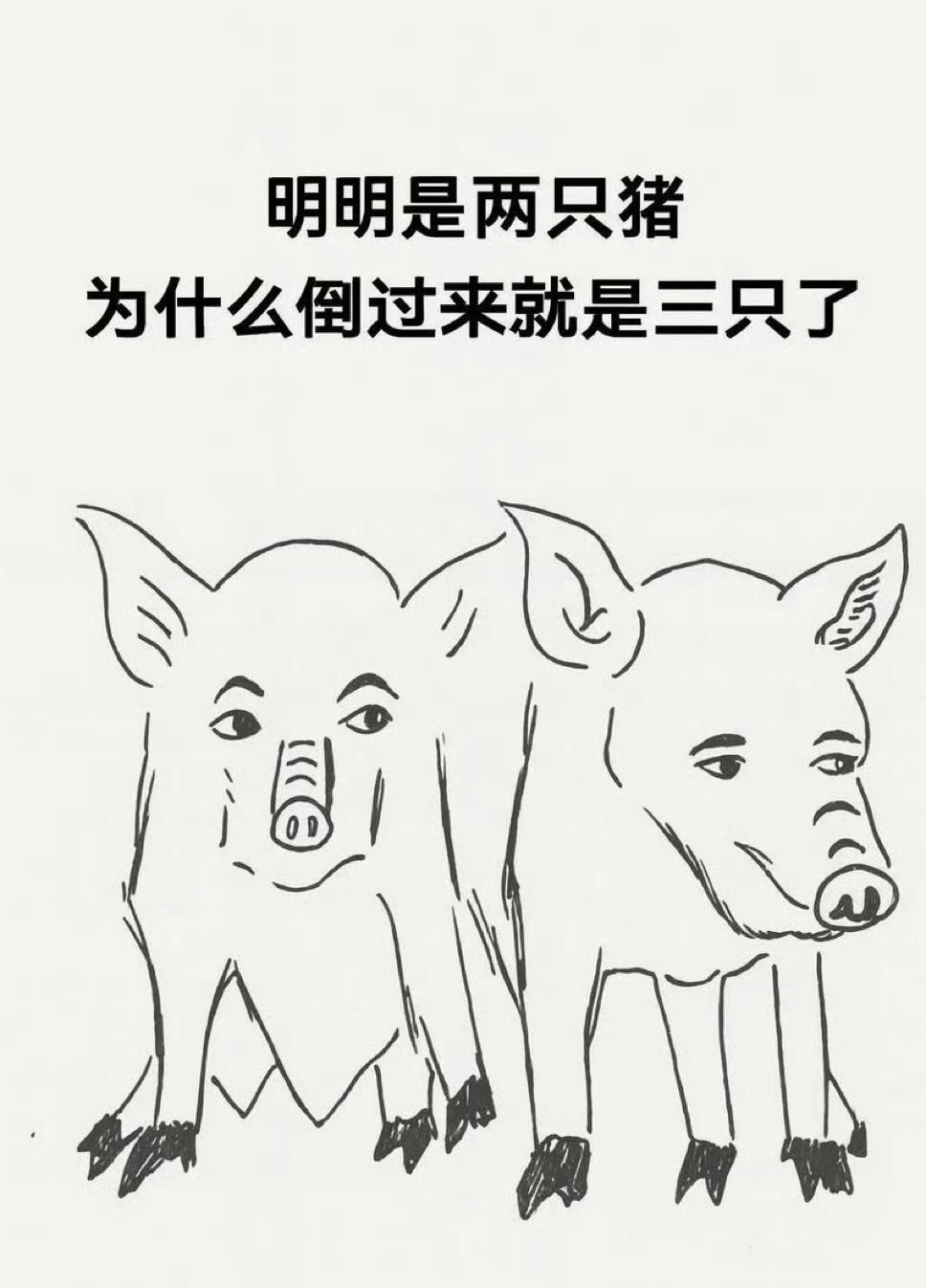 明明是两只猪,为什么倒过来就是三只了。 反正我是信了。 也倒过来看了,果真如此。