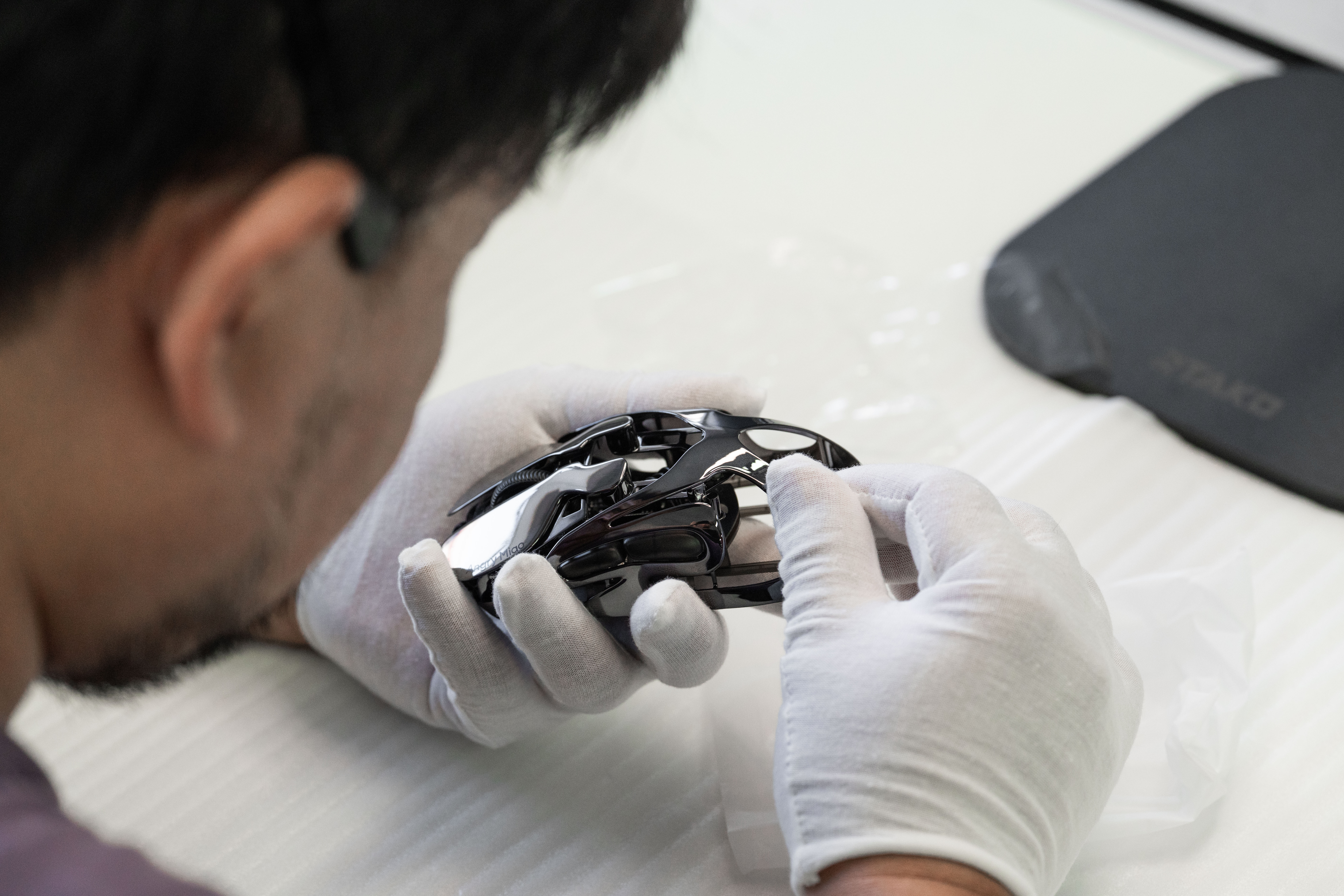 AM Infinity Mouse 镜影的特挑版本,会额外多一个不锈钢高光压线器,上面会镭雕着负责给这只镜影鼠标进行外观品检的人的名字(事后补发,这玩意刚设计完还没做)。