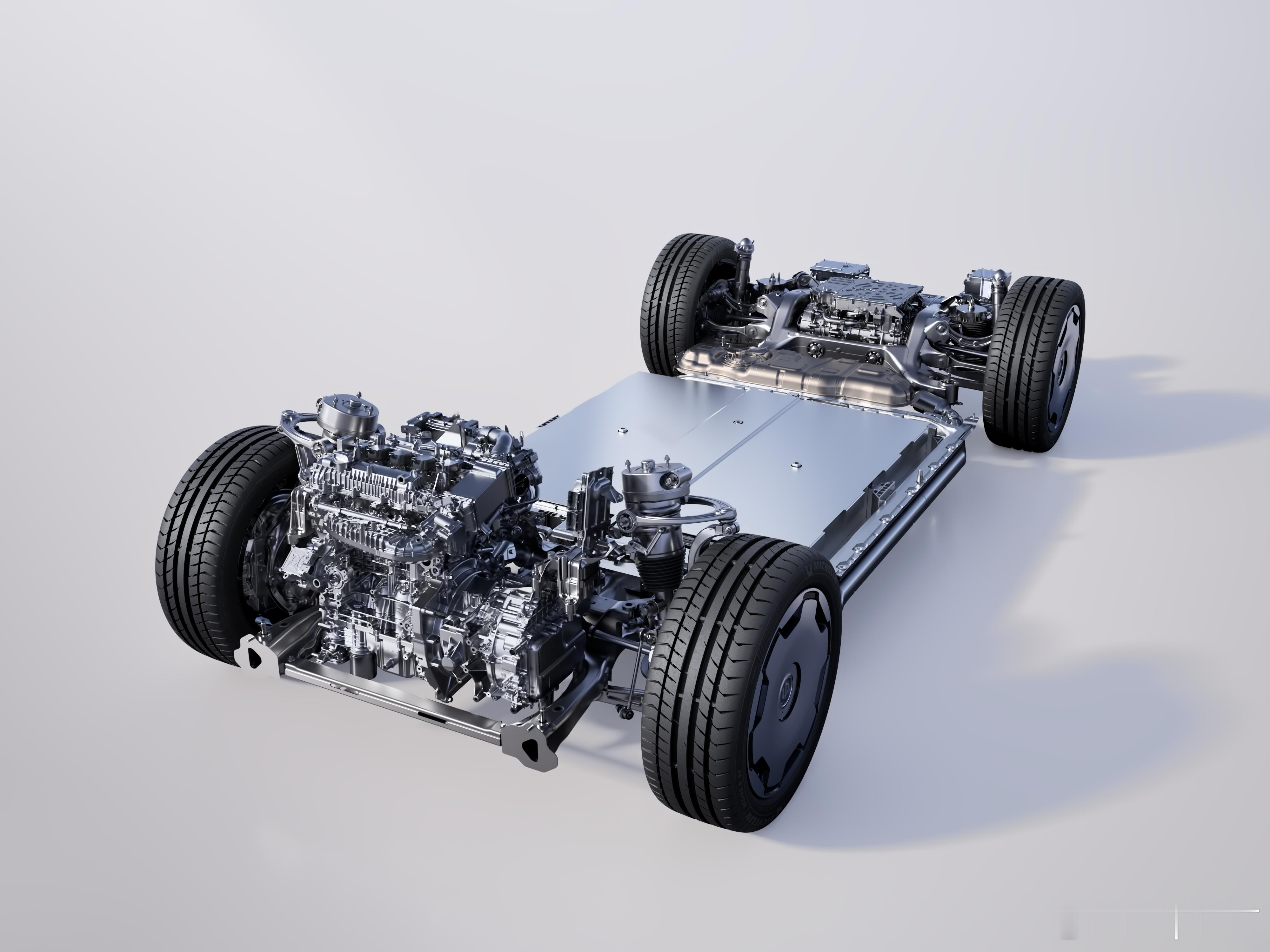 零跑D19采用了全球首创的复用电机四驱增程系统,听起来很复杂,实际上很好理解,我们一步一步来,传统四驱增程系统的动力形式是要在车辆的前舱布置两套电驱系统,即一套发电一套驱动,增程器带动发电机发电,发电机发的电同时再供给前电机,这套电驱系统是传统增程的形式,中间动力链传动较长,能量损伤不说,对整车空间和轻量化都是极大的妥协,而零跑联合采埃孚对这套系统进行了重新开发,实现了二合一电机的动力形式,既能发电也能驱动,这样不仅仅解决驱动问题,同时也增大空间利用率,重量也得到了优化,可以说一举三得,在采用更大能量电池情况下,轻量化做得好,续航也会更长