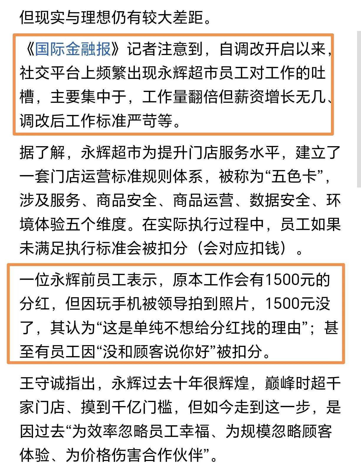 不要看说什么,要看做什么。 永辉超市说已经通过门店调改,提高了效率。还学习胖东来,给自家员工分红了3100万。 可看报道情况,所谓的调改增加了工作量、让工作标准更加严苛;所谓的分红,实际上还没到员工手里就被以各种理由花式扣除了。 典型的“又要马儿跑,又要马儿不吃草”。 永辉可以说把胖东来的思想被学歪了,只是借着胖东来的招牌做了一次浮于表面的秀、一场广告活动。 它实际上不可能和胖东来一样,真的会给一线员工发钱、提高待遇,下发的3100万分红只是吊在普通员工面前很难吃到嘴里的胡萝卜。 你认为永辉超市该如何平衡员工薪资与工作量